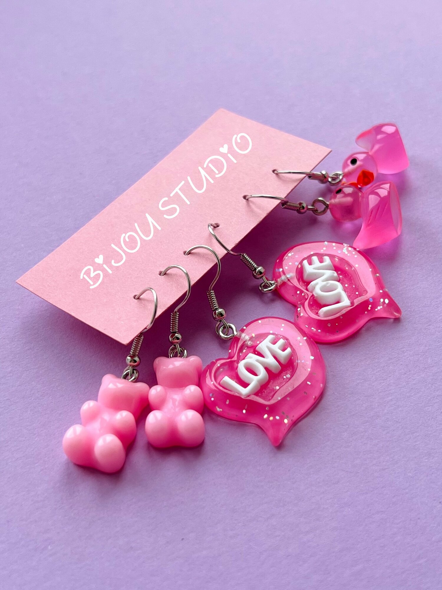 Комплект серег BIJOU.STUDIO, мультиколор, фиолетовый, розовый, серебряный, бежевый, голубой, фуксия, синий