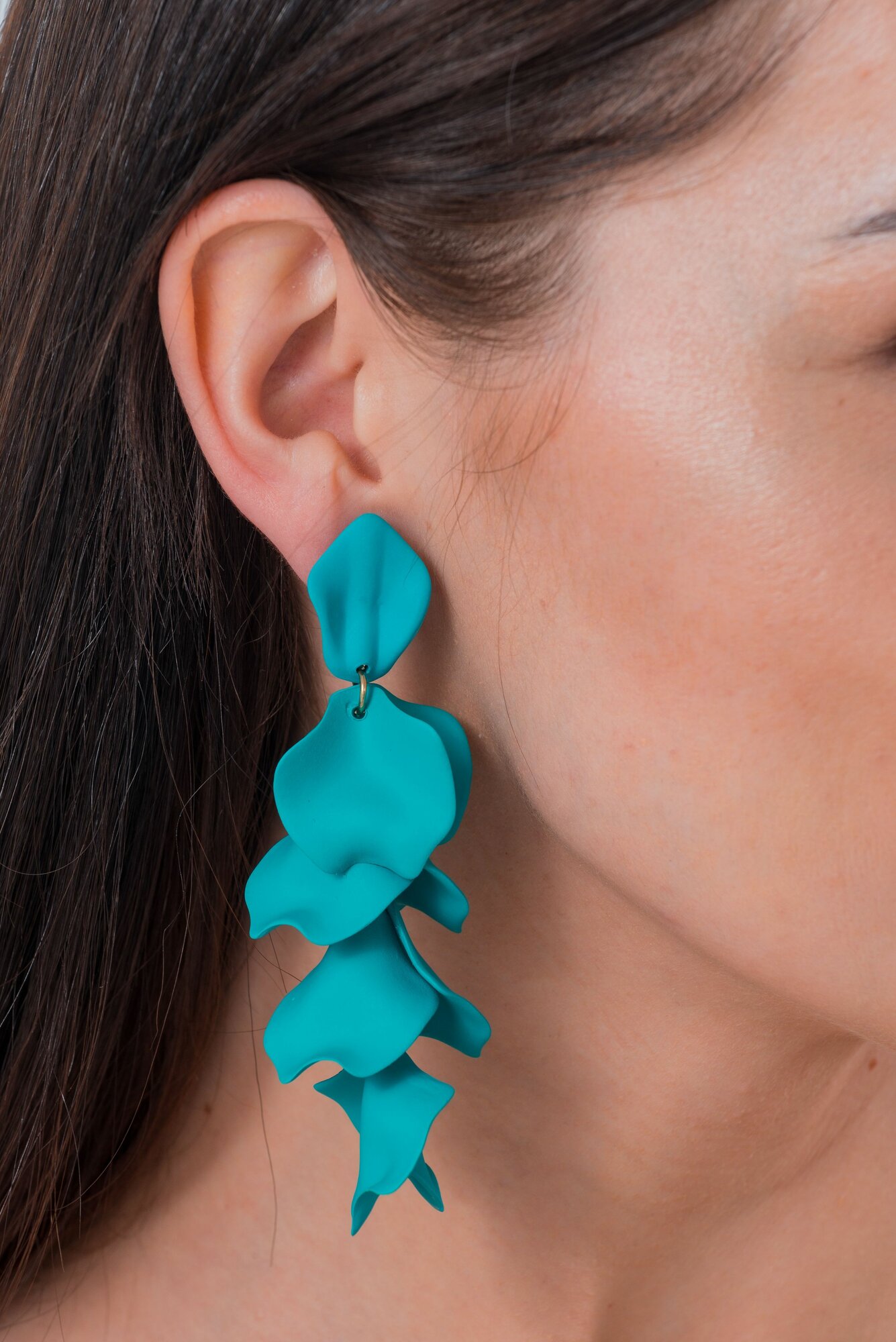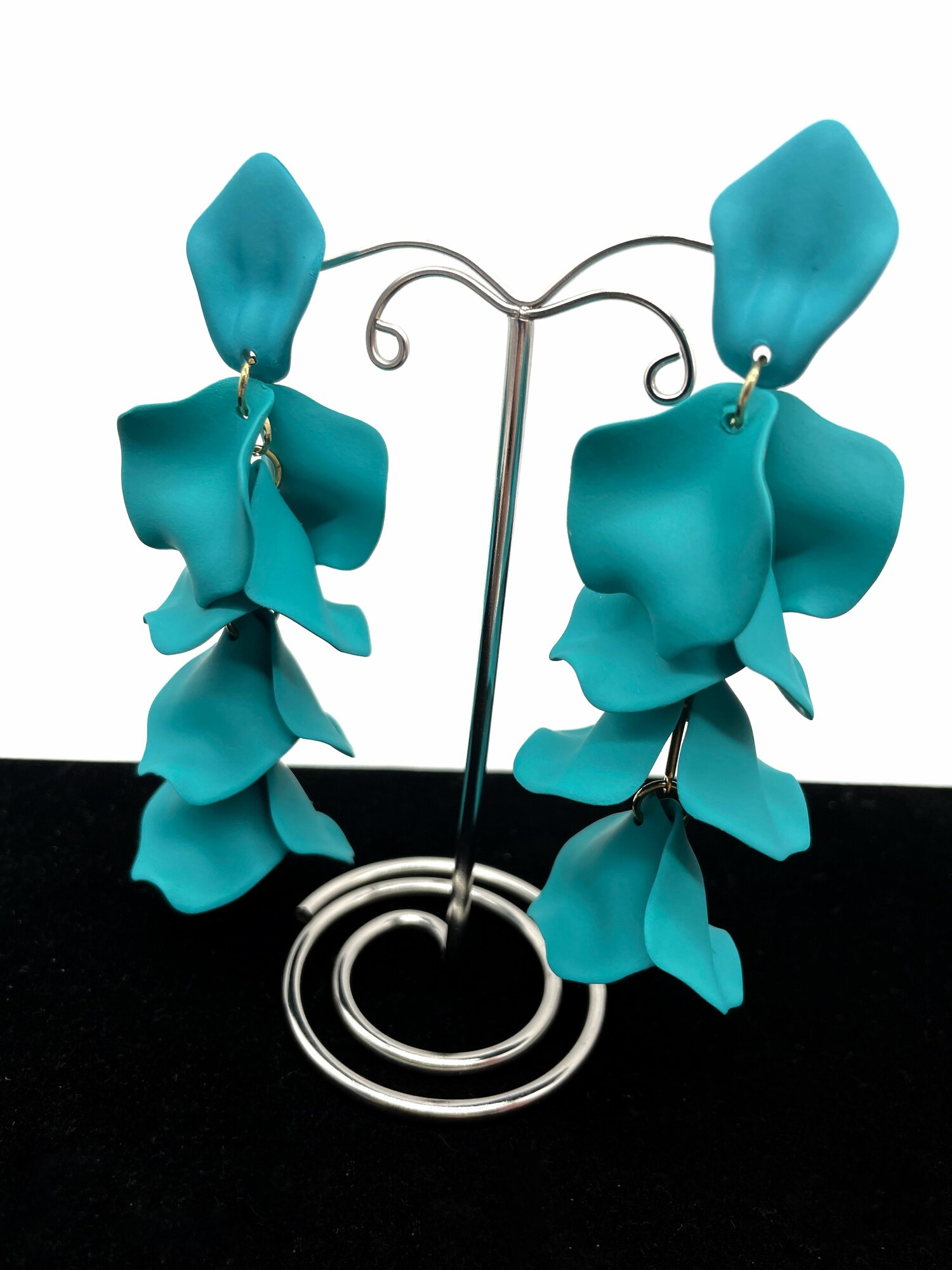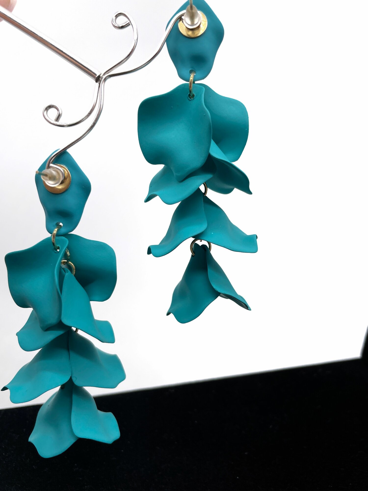 Серьги лепестки темно-синие перелив длинные женские стильные сережки тренд 2024