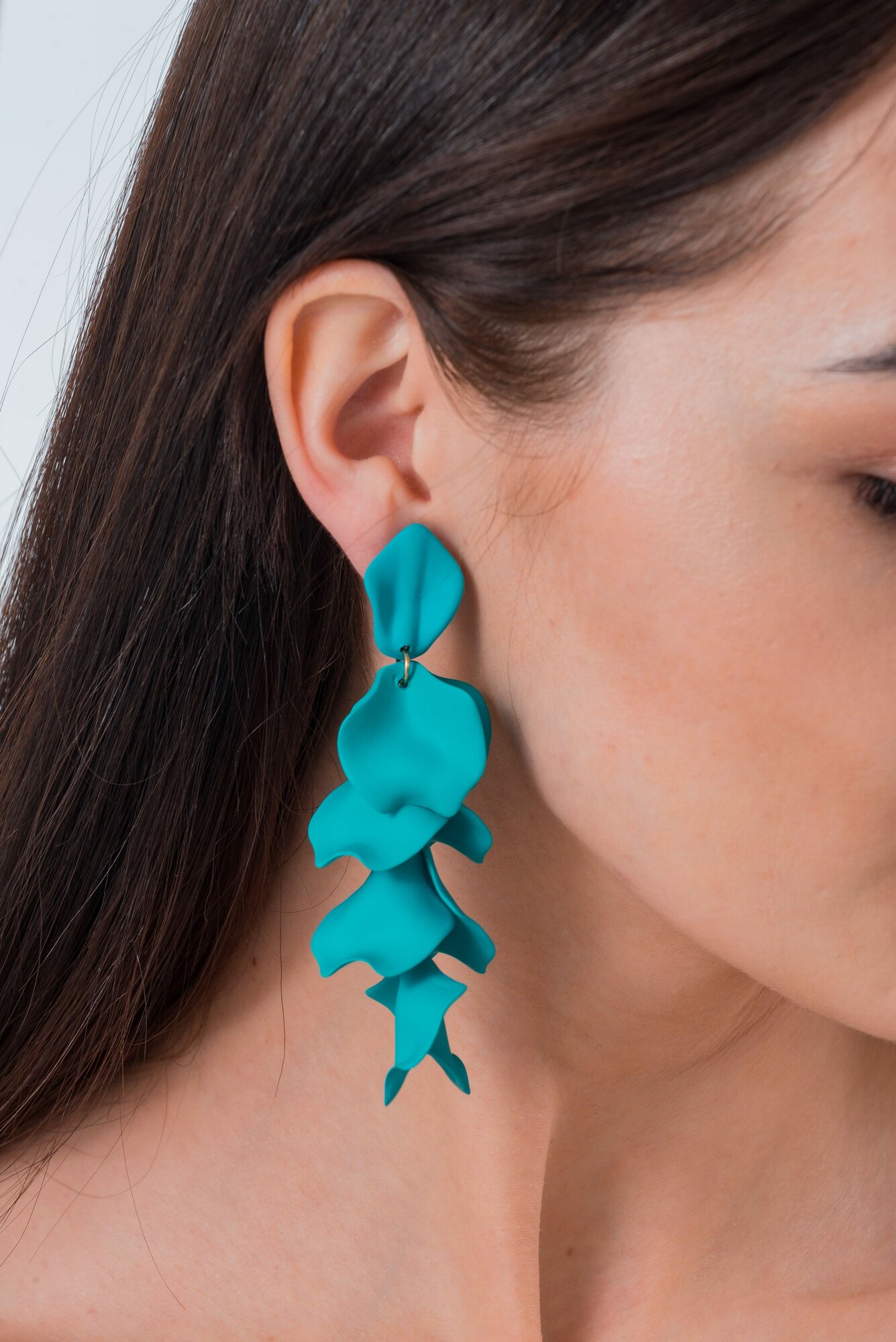 СохранитьСерьги длинные висячие вечерние женские стильные бирюзовые сережки тренд 2024 интересное: