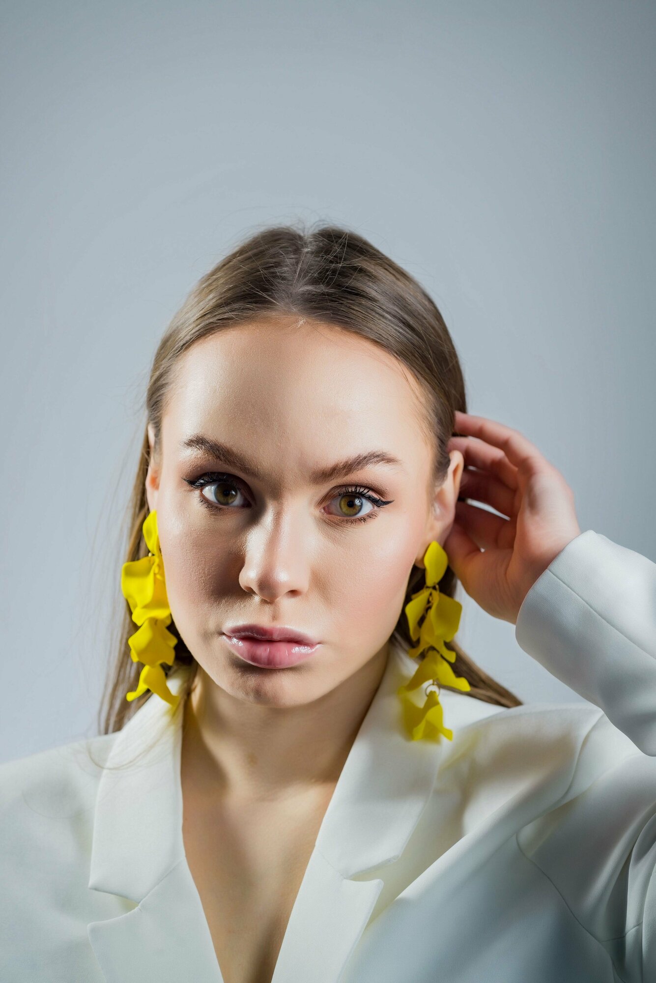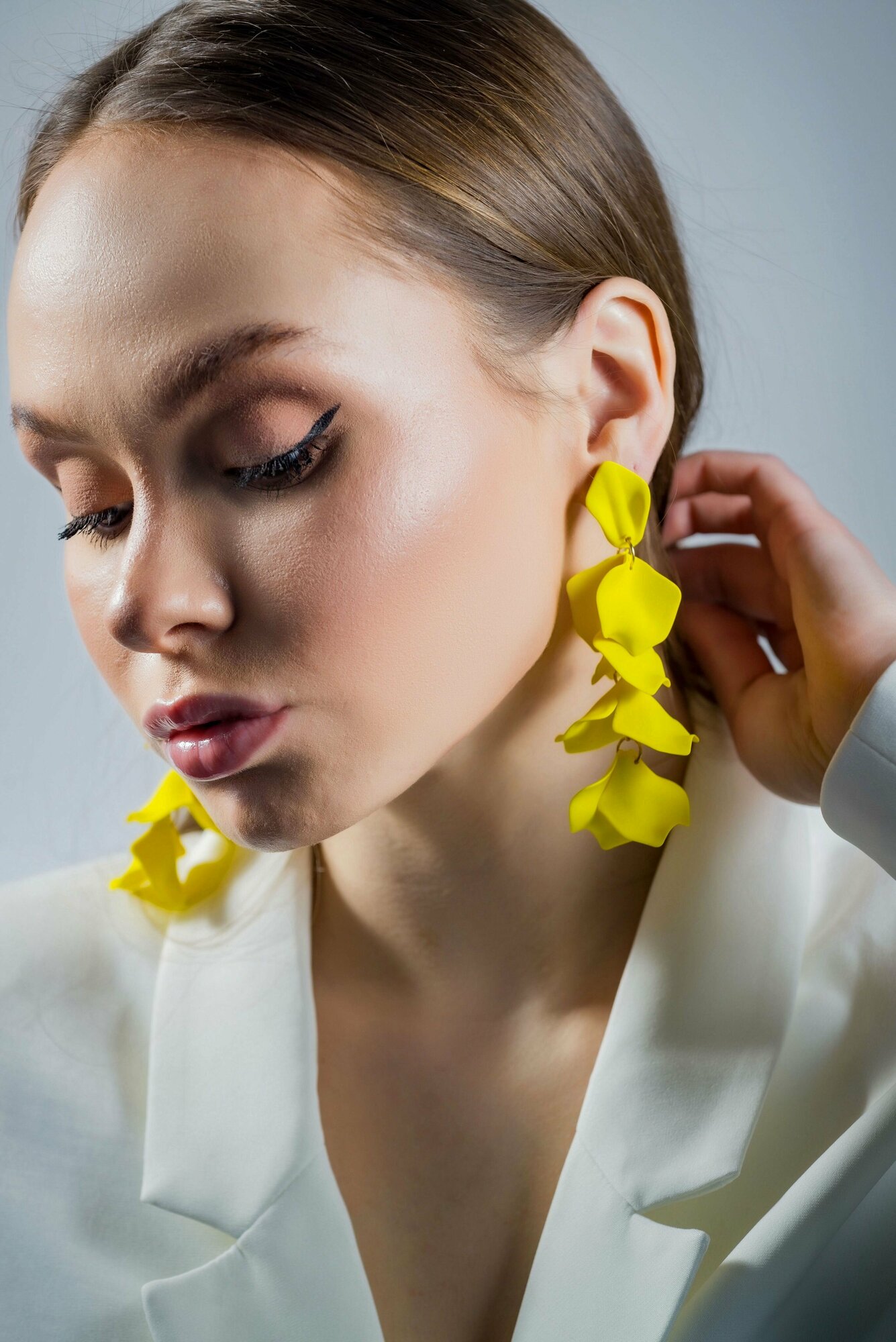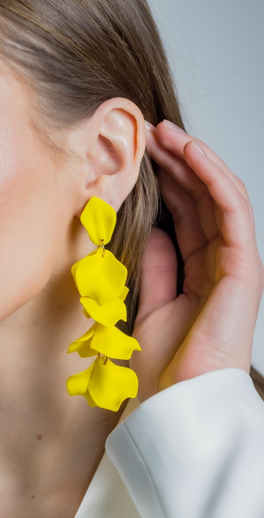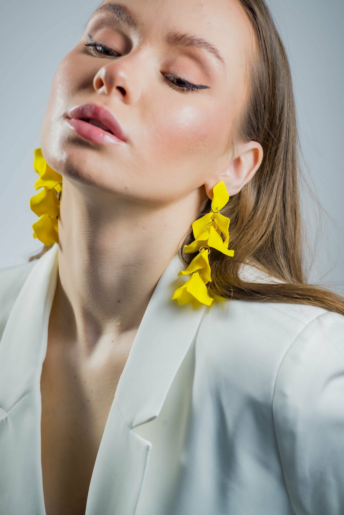 СохранитьСерьги длинные висячие вечерние женские стильные желтые сережки тренд 2024 интересное: