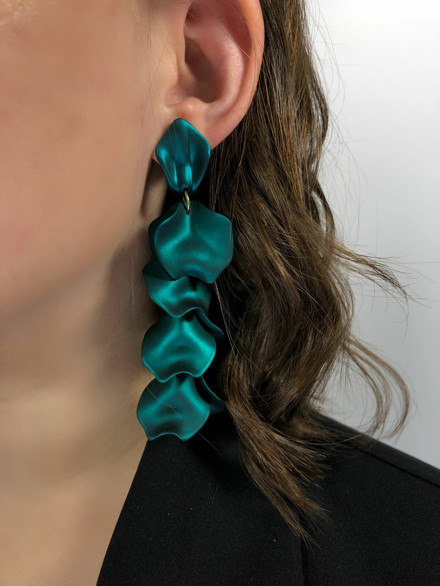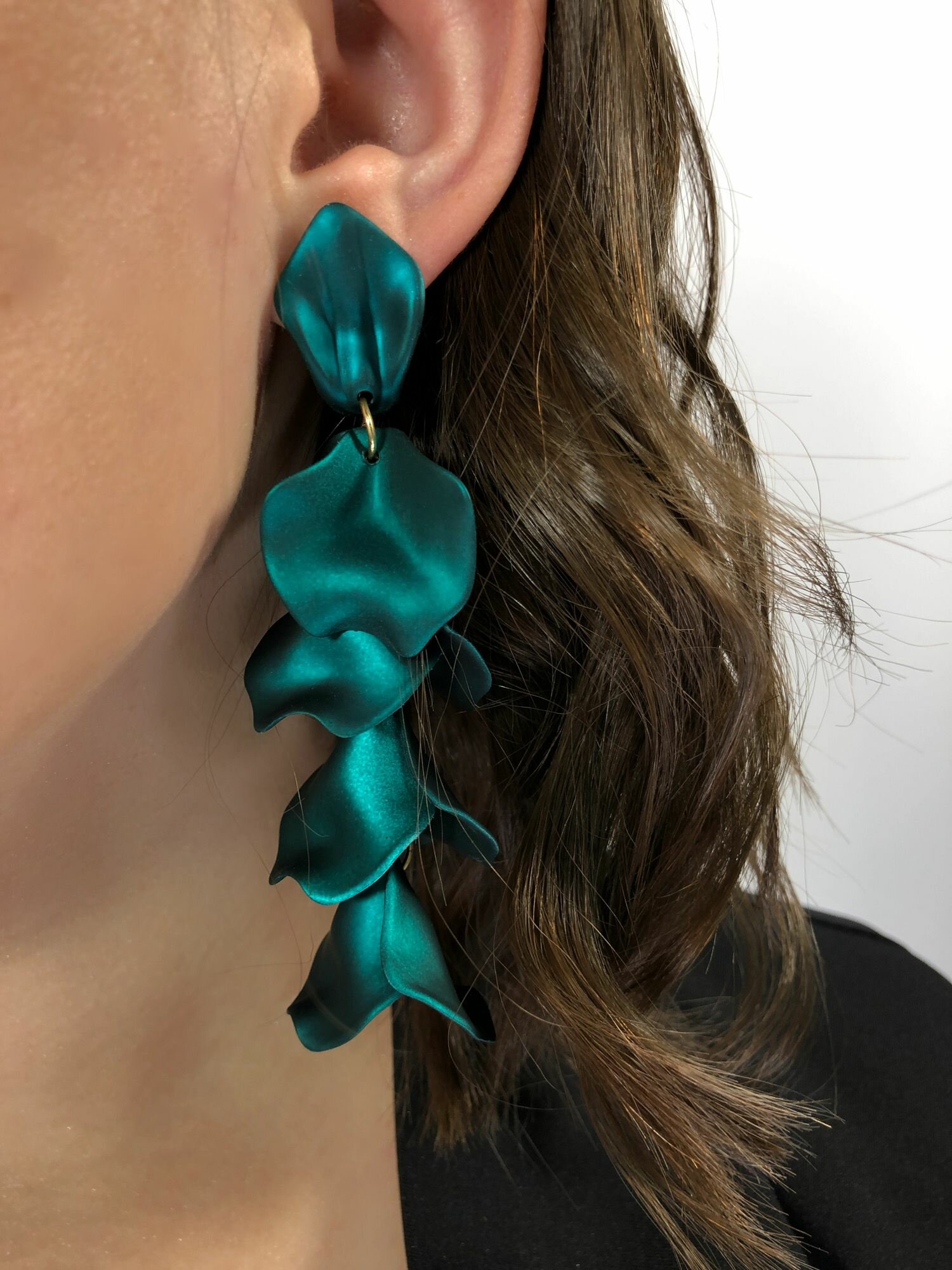 Серьги лепестки темно-синие перелив длинные женские стильные сережки тренд 2024