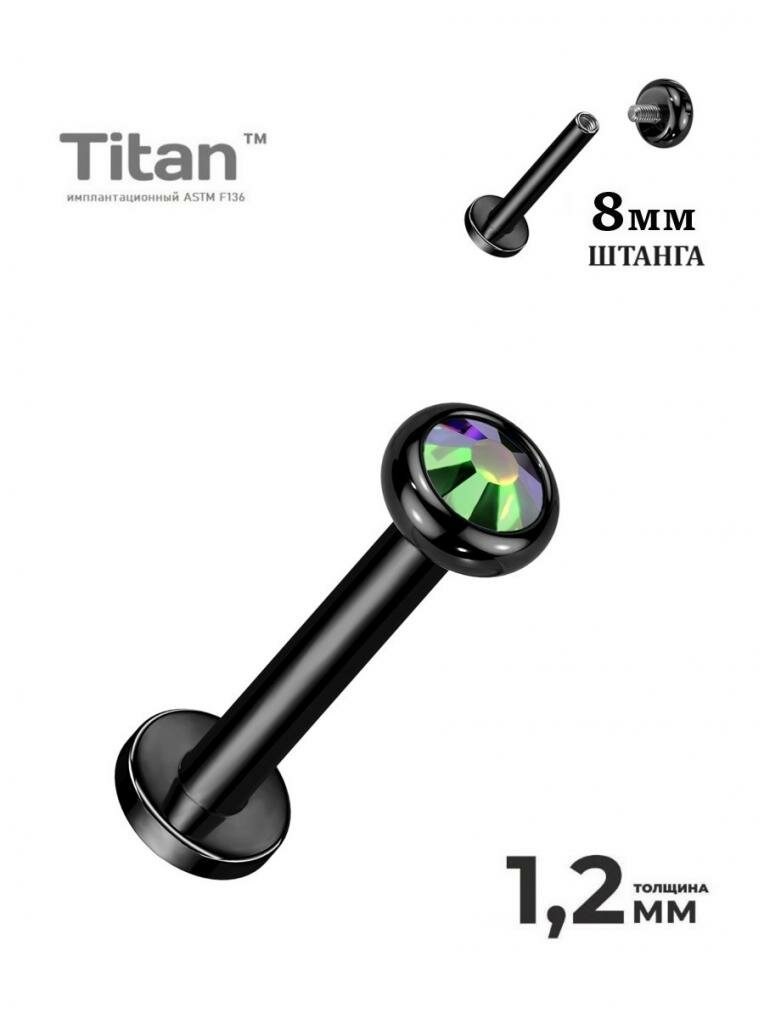 Титановая серьга лабрет с внутренней резьбой для пирсинга Монро, трагуса, хеликса/ 1.2*8 мм (кристалл: кубический цирконий)
