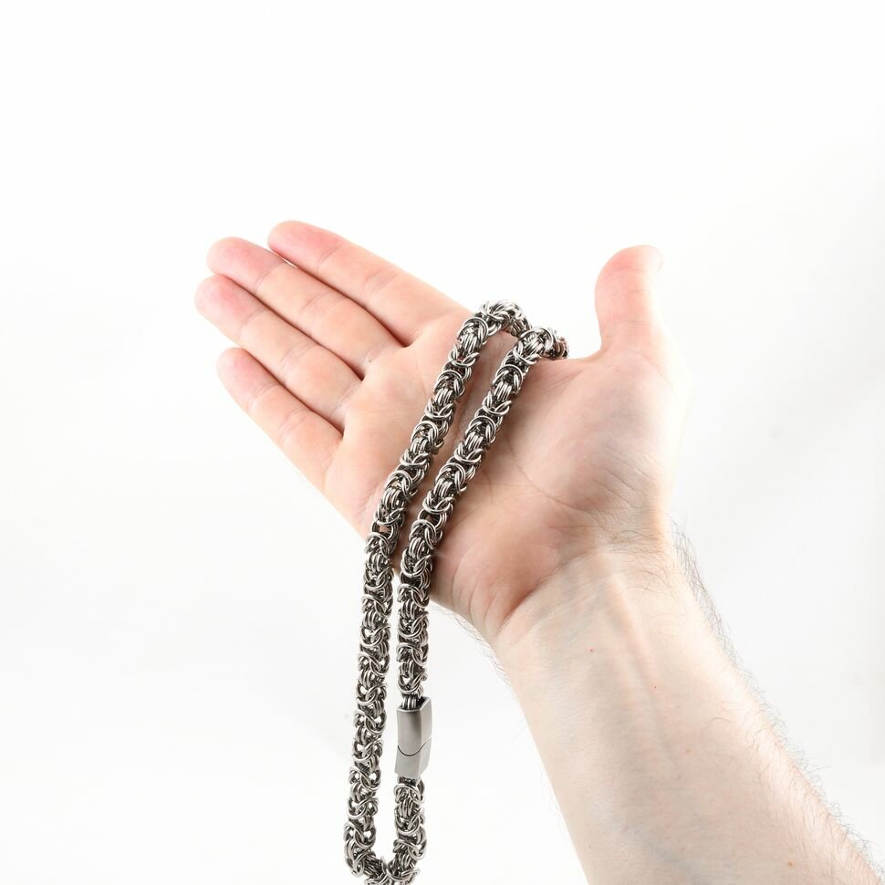 Мужская цепь на шею ручной работы Alena Kitaeva Тритон макси плюс из нержавеющей стали, византийское плетение, размер 60 см, ширина 9 мм