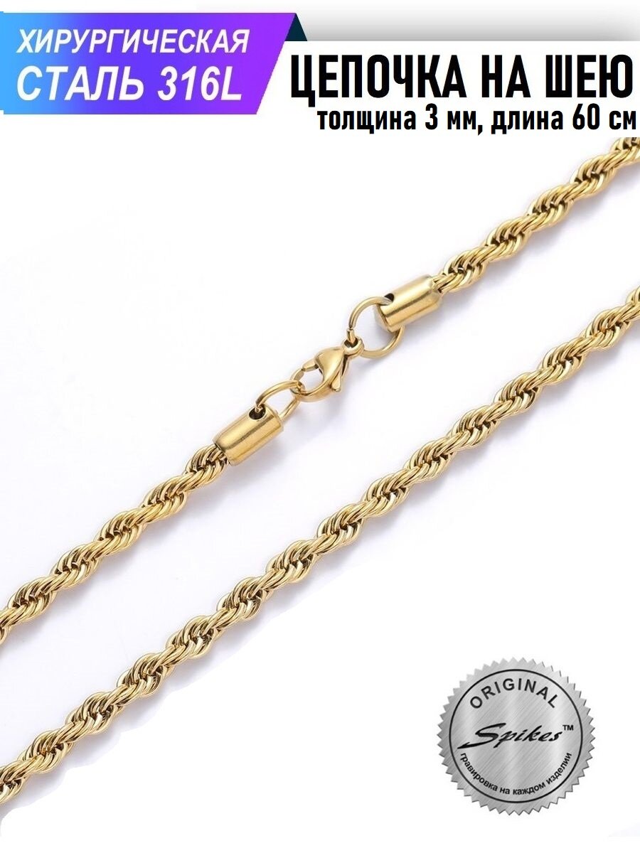Цепочка на шею из стали Spikes , веревочное плетение лобстер. Толщина 3 мм, длина 600 мм