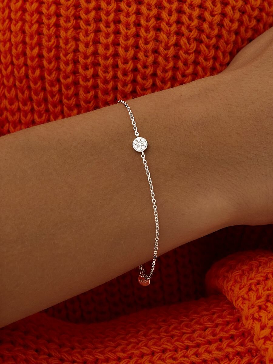 Браслет-цепочка MIESTILO, серебро, 925 проба, родирование, фианит, длина 18 см., серебристый