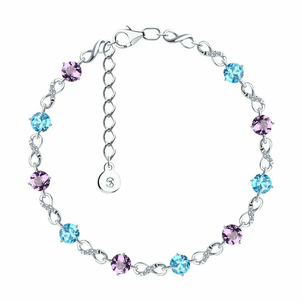 Браслет SOKOLOV из серебра с миксом камней 92050154, размер 19 см