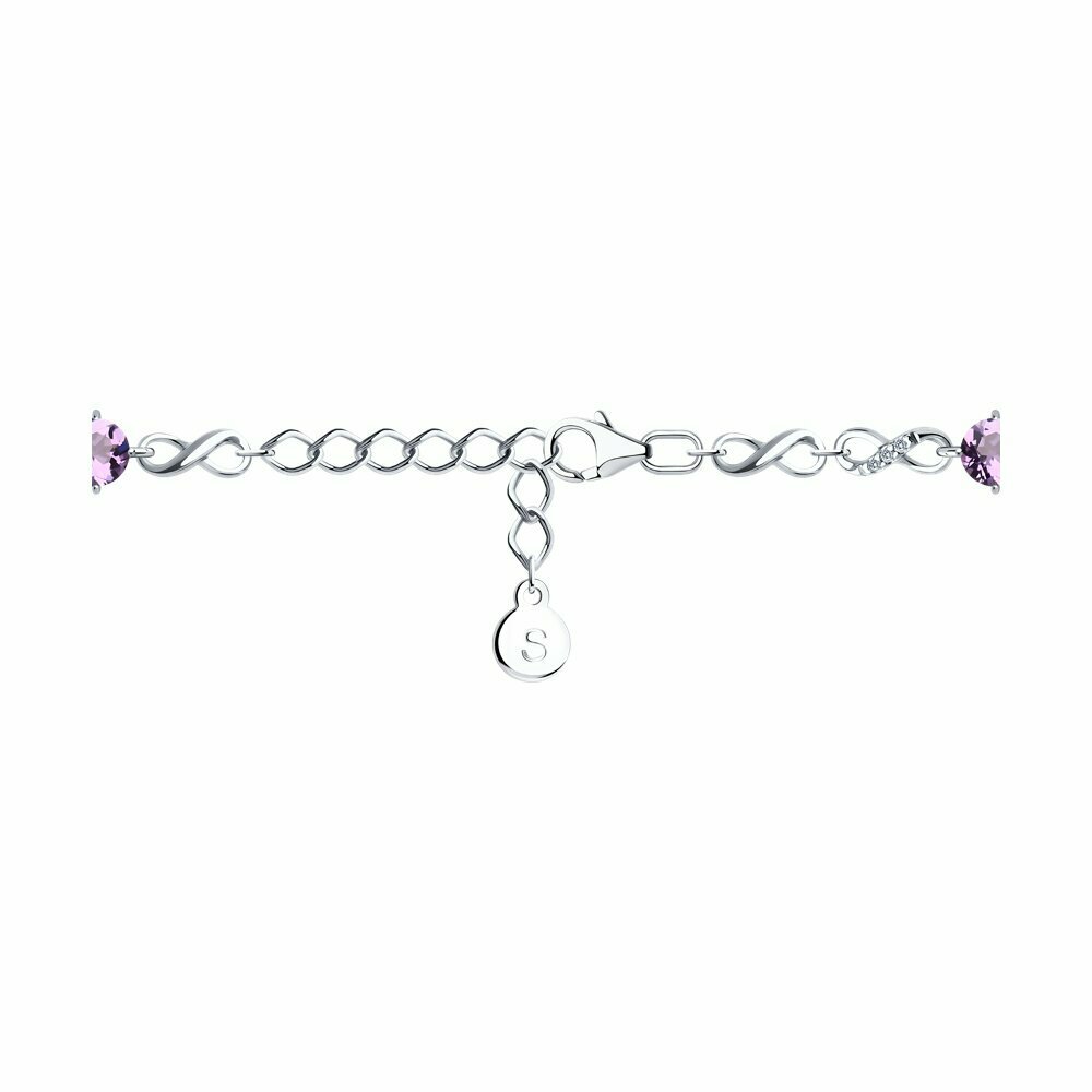 Браслет SOKOLOV, серебро, 925 проба, родирование, аметист, длина 19 см.