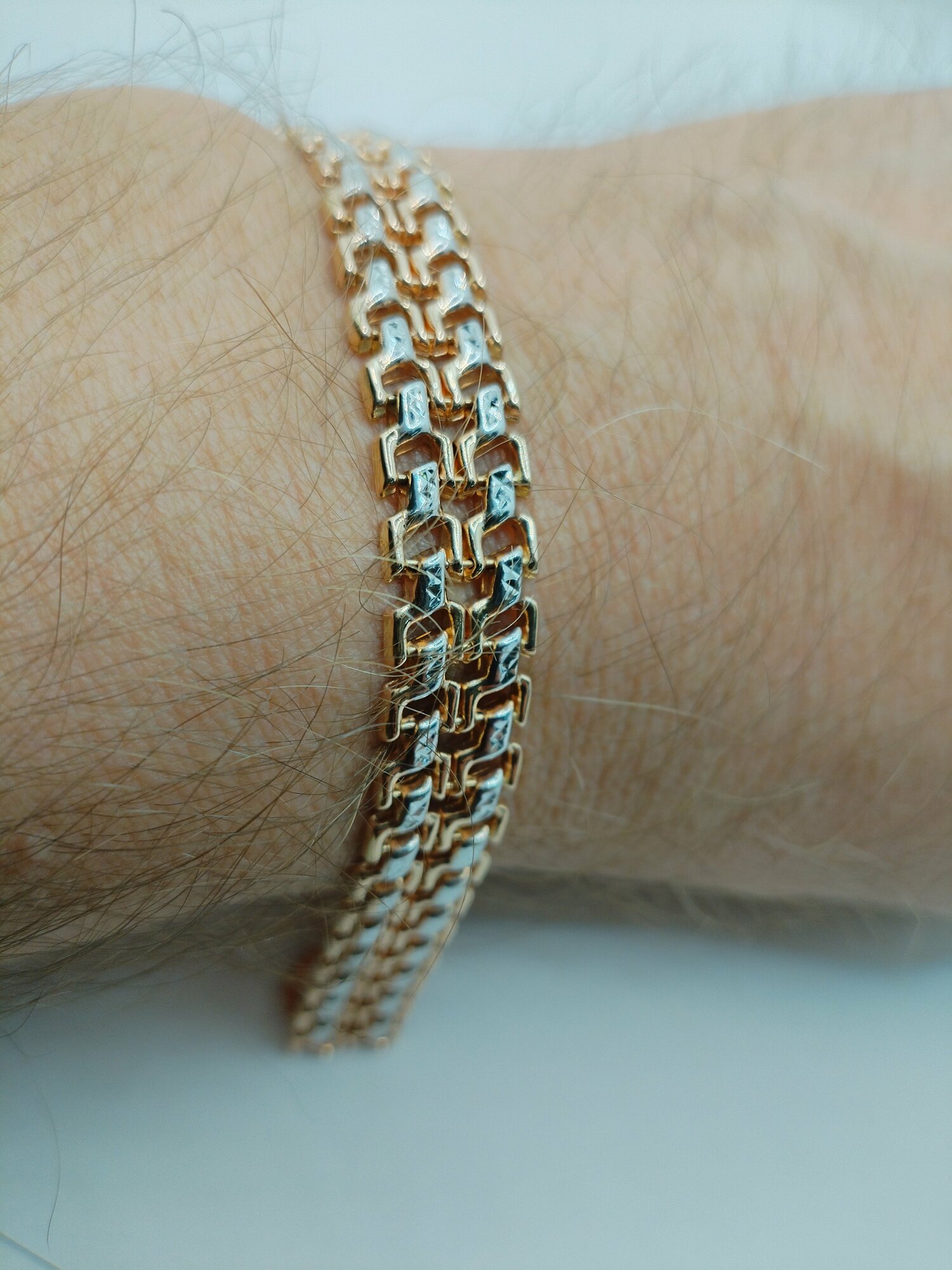 СохранитьПустотелый широкий браслет из красного золота 585 с родированием размер 18.5 интересное: