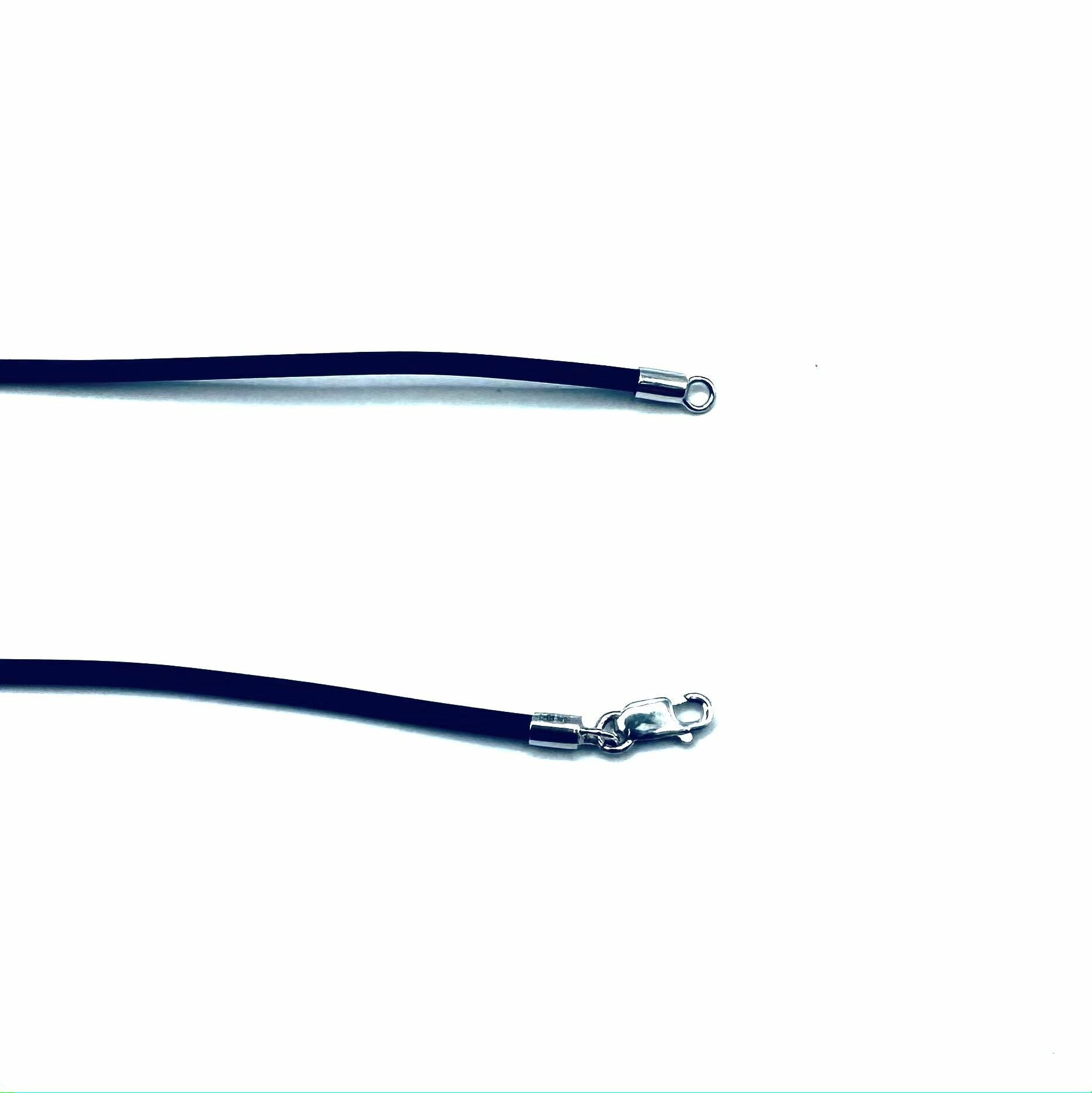 Шнурок ювелирный гайтан черный на шею 50 см, каучуковый с серебряным замком с родиевым покрытием ширина 2,5 мм.