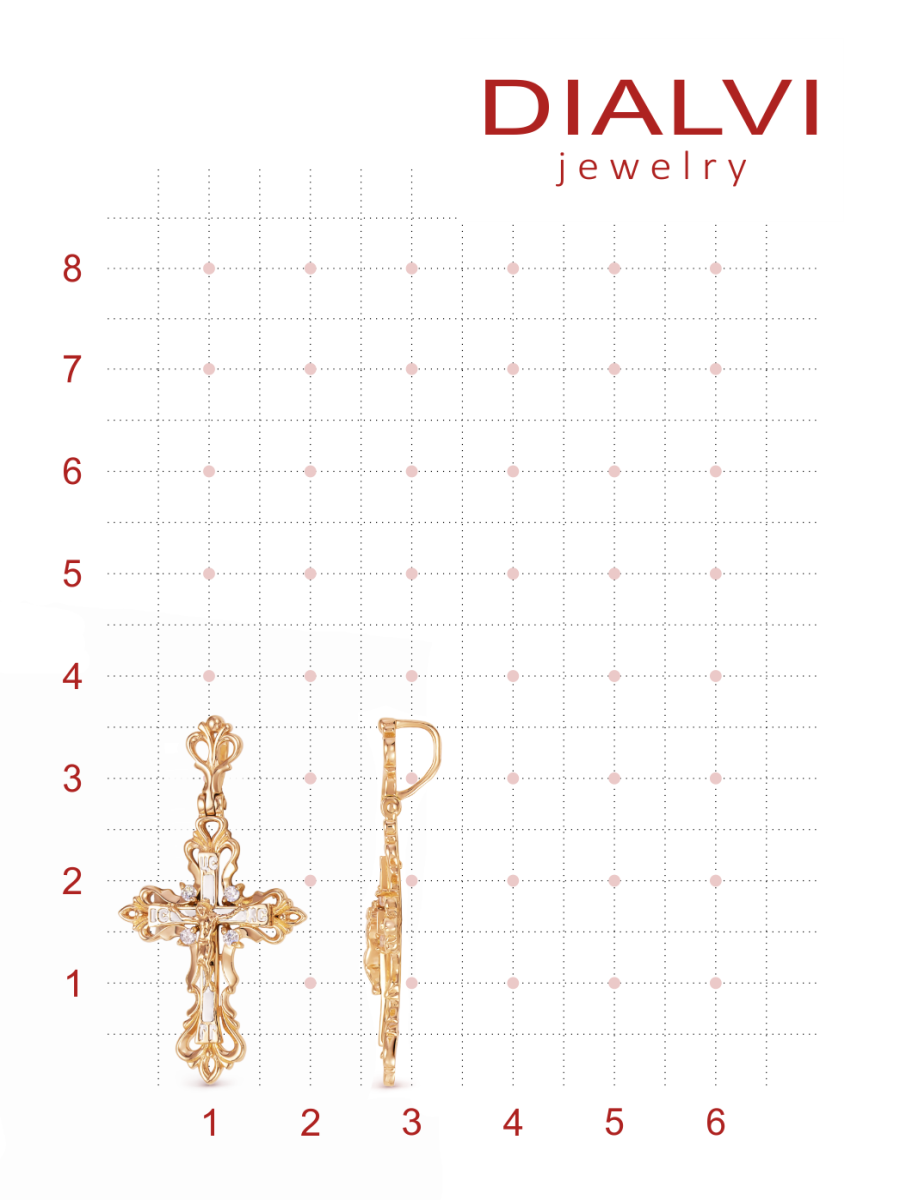 Крестик DIALVI JEWELRY, серебро, 585, 925 проба, золочение, эмаль, фианит, размер 3.6 см.