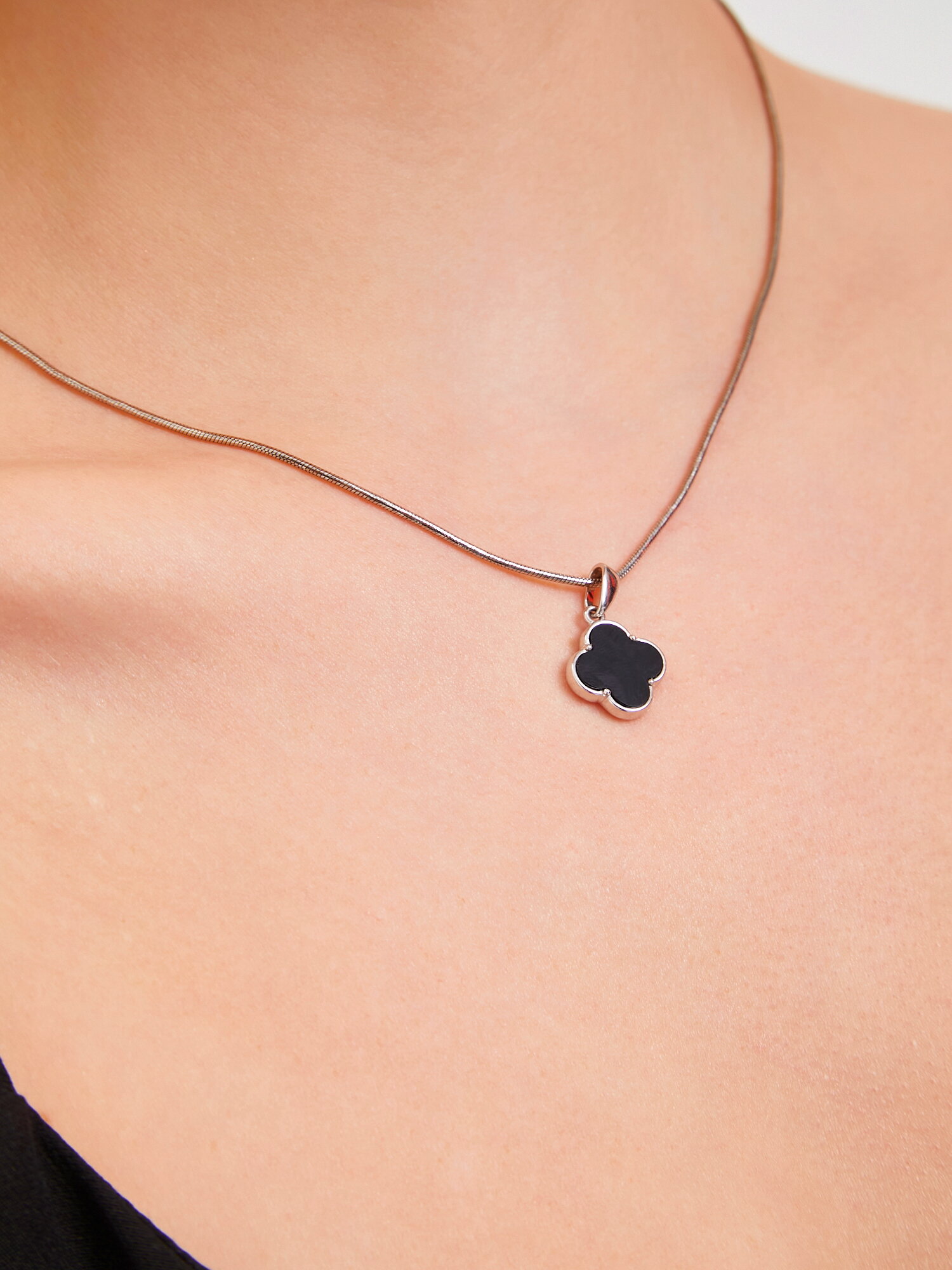 Подвеска ПЕРСОНА, серебро, 925 проба, родирование, оникс, размер 1.3 см., черный