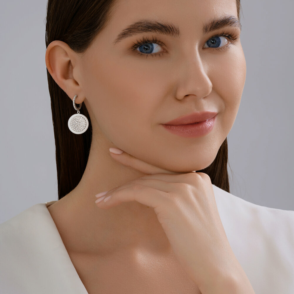 Купить Серьги SOKOLOV из серебра с керамическими вставками и фианитами 94026914