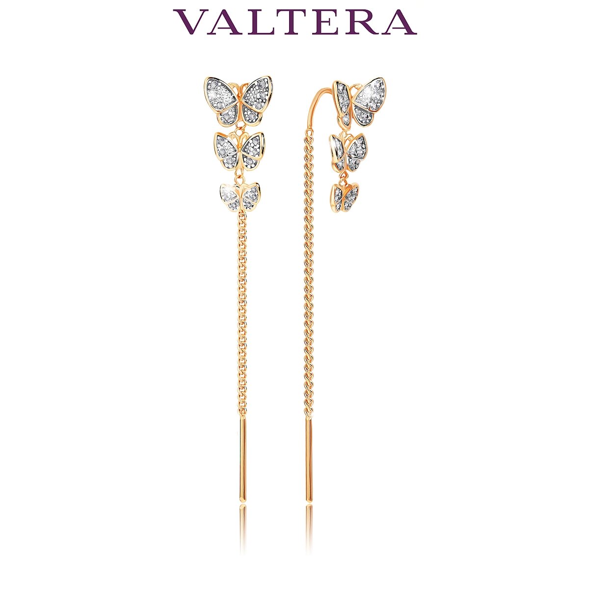 Серьги VALTERA протяжки / бабочки / серебро 925 пробы / покрытие - красное золото 585 пробы / с фианитами 119015