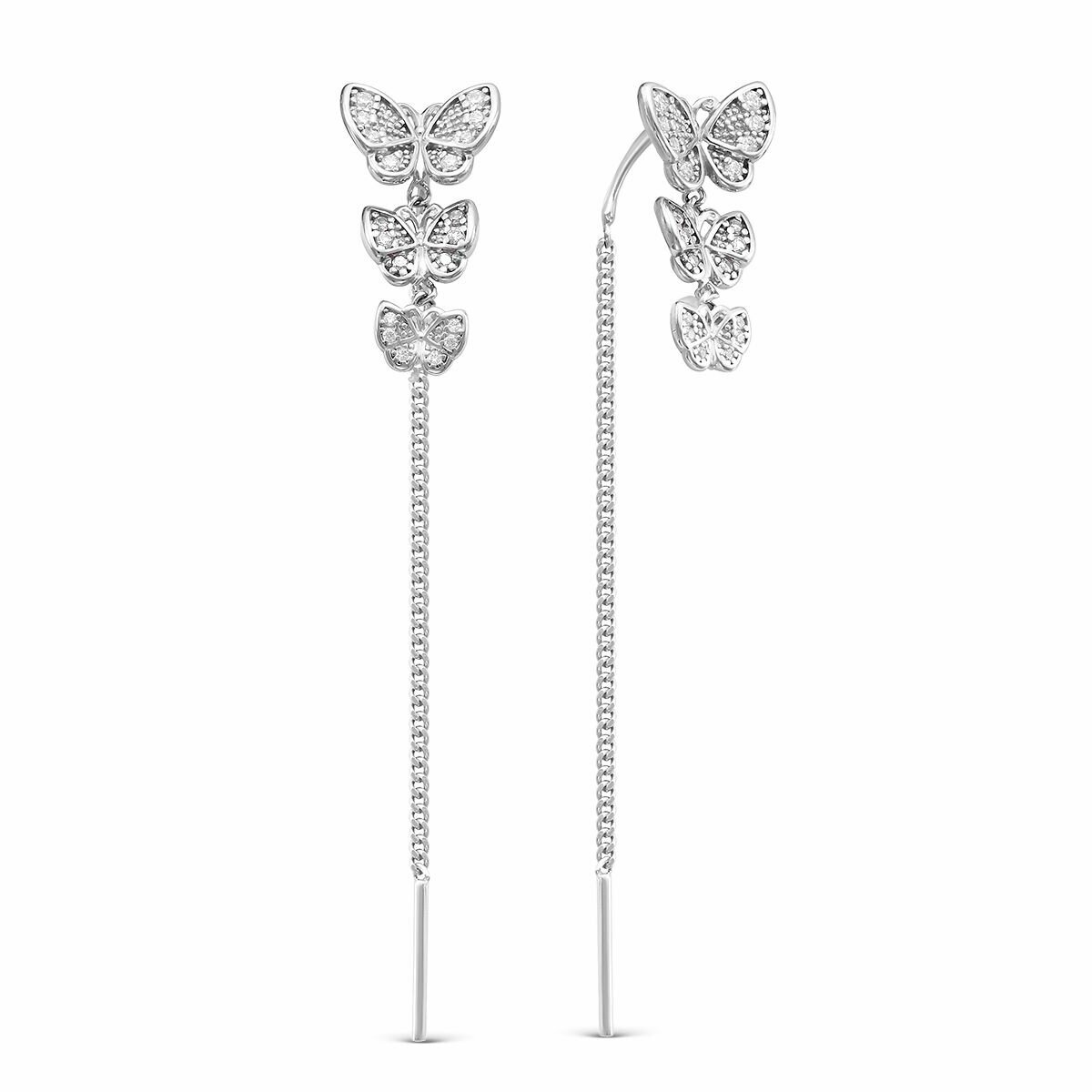 Купить Серьги VALTERA бабочки продевки / протяжки / серебро 925 пробы / со вставками фианит / 119105