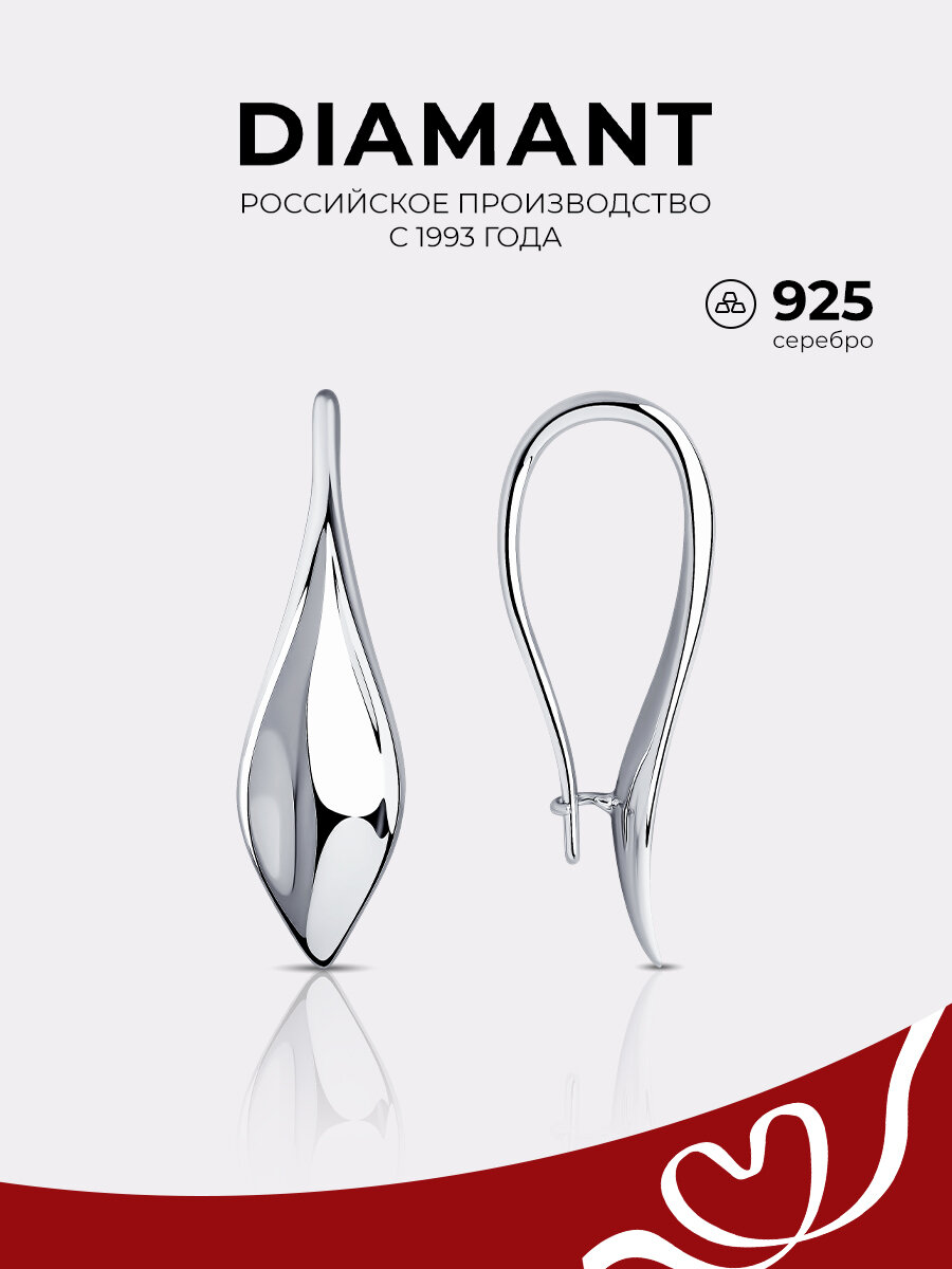 Серьги из золочёного серебра Diamant online Я821062п-к с янтарём, Серебро золочение 925°