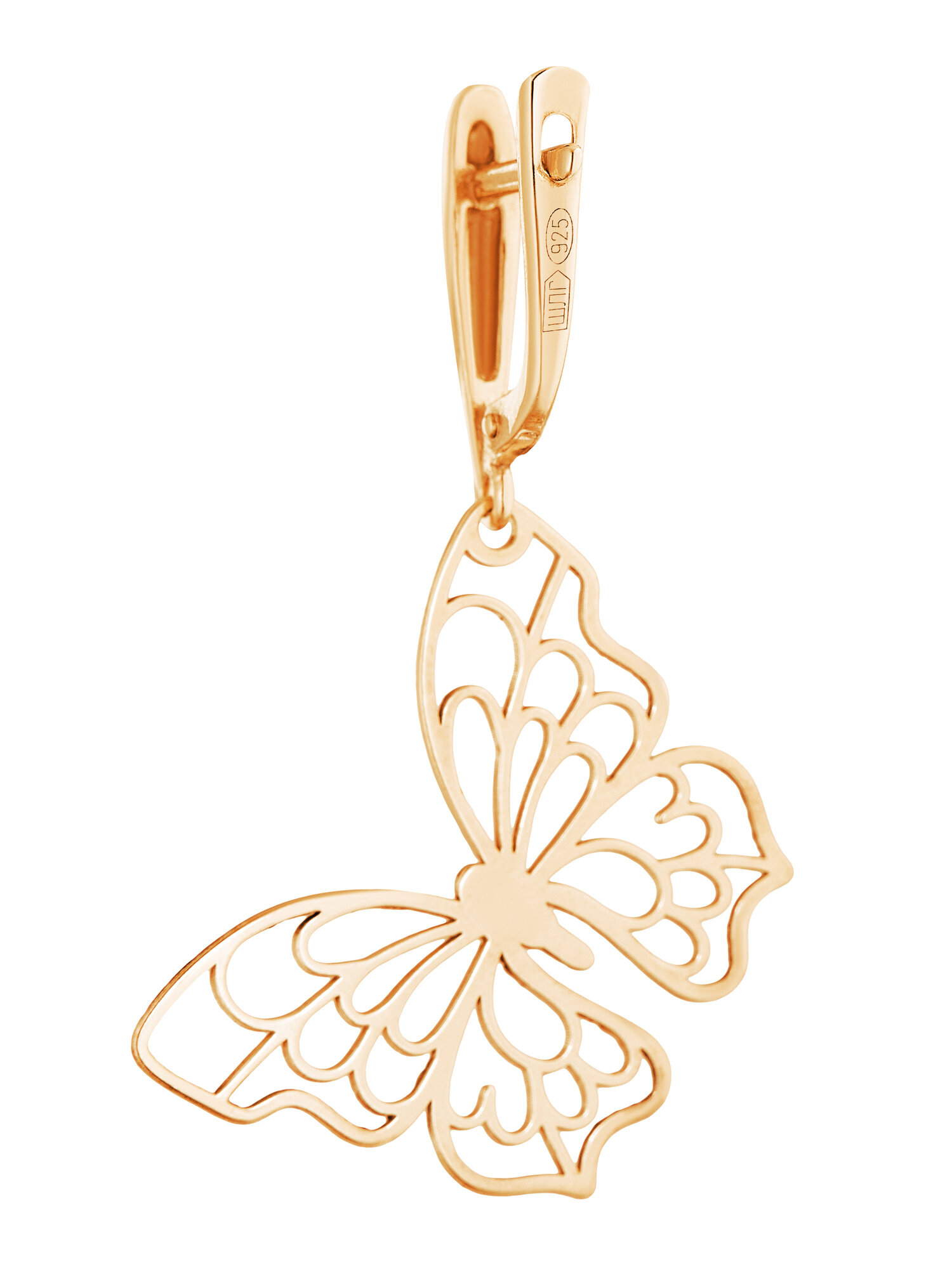 Серьги серебряные 925 пробы в позолоте подвески Бабочки с алмазной гранью, ср.вес изделия 2,32 гр, 2027544/9пр. интересное: