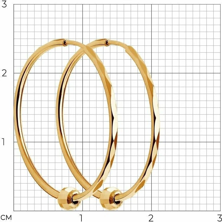 Серьги конго SOKOLOV из золота с алмазной гранью 140120, диаметр 10 мм
