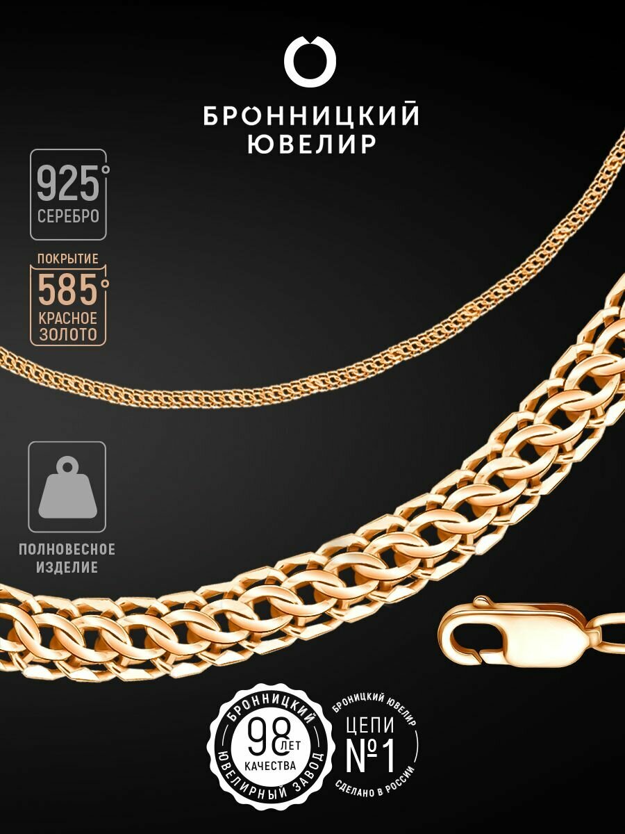 Цепь Бронницкий Ювелир, серебро, 925 проба, золочение, длина 50 см, средний вес 23.45 г, , золотистый, красный