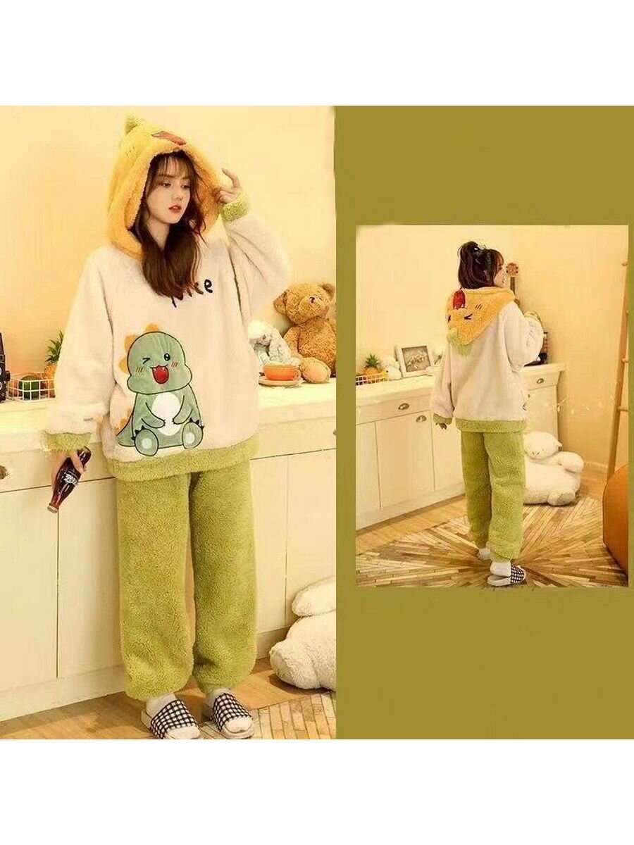 Теплая махровая пижама Кигуруми динозавр, (44-46)