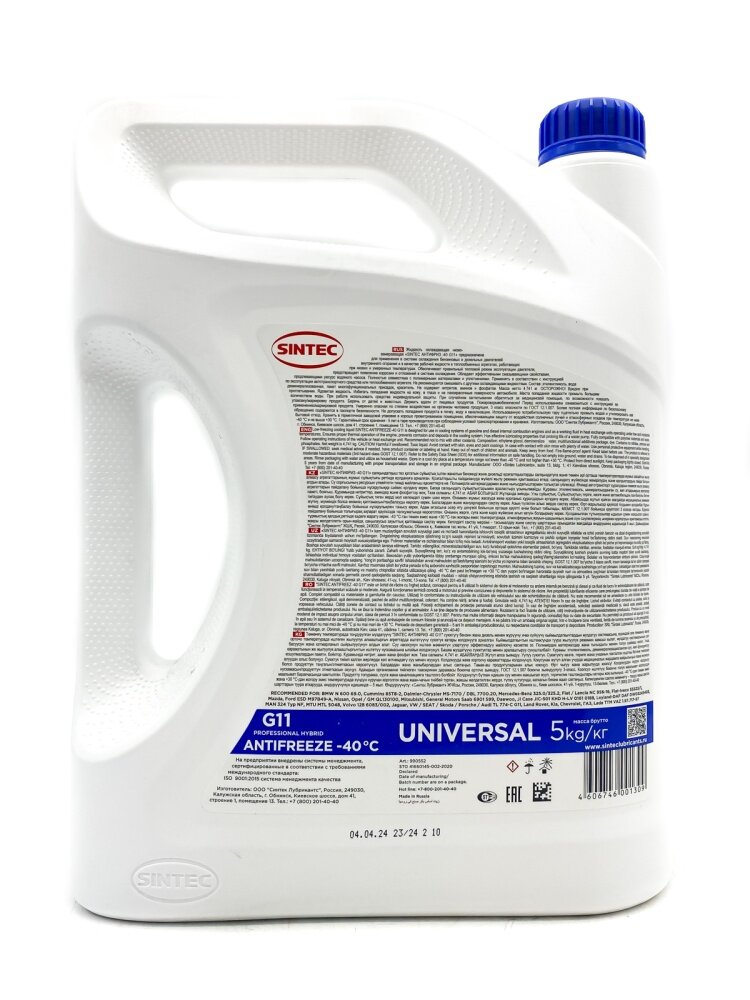Антифриз Sintec Universal G11 Готовый -40c Синий 5 Кг 800522 SINTEC арт. 800522