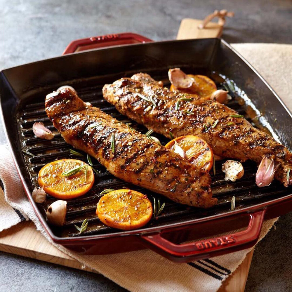 Купить Сковорода-гриль Staub квадратная с 2 ручками, 28х28 см, вишневая (12012806)