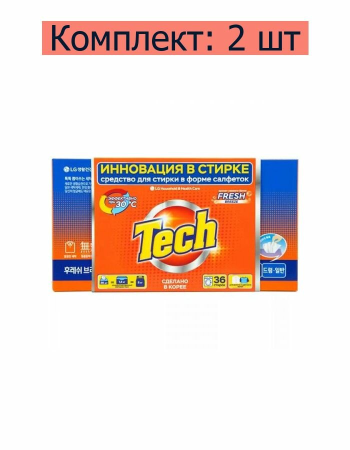 Средство для стирки TECH в листах, Fresh Breeze, 36 шт (10740672/10741393)