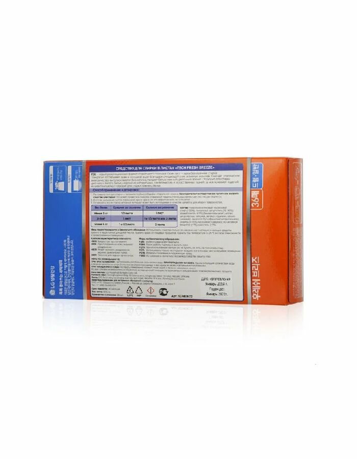 LG Tech Fresh Breeze Средство для стирки в форме салфеток с ароматом свежего бриза 36 шт
