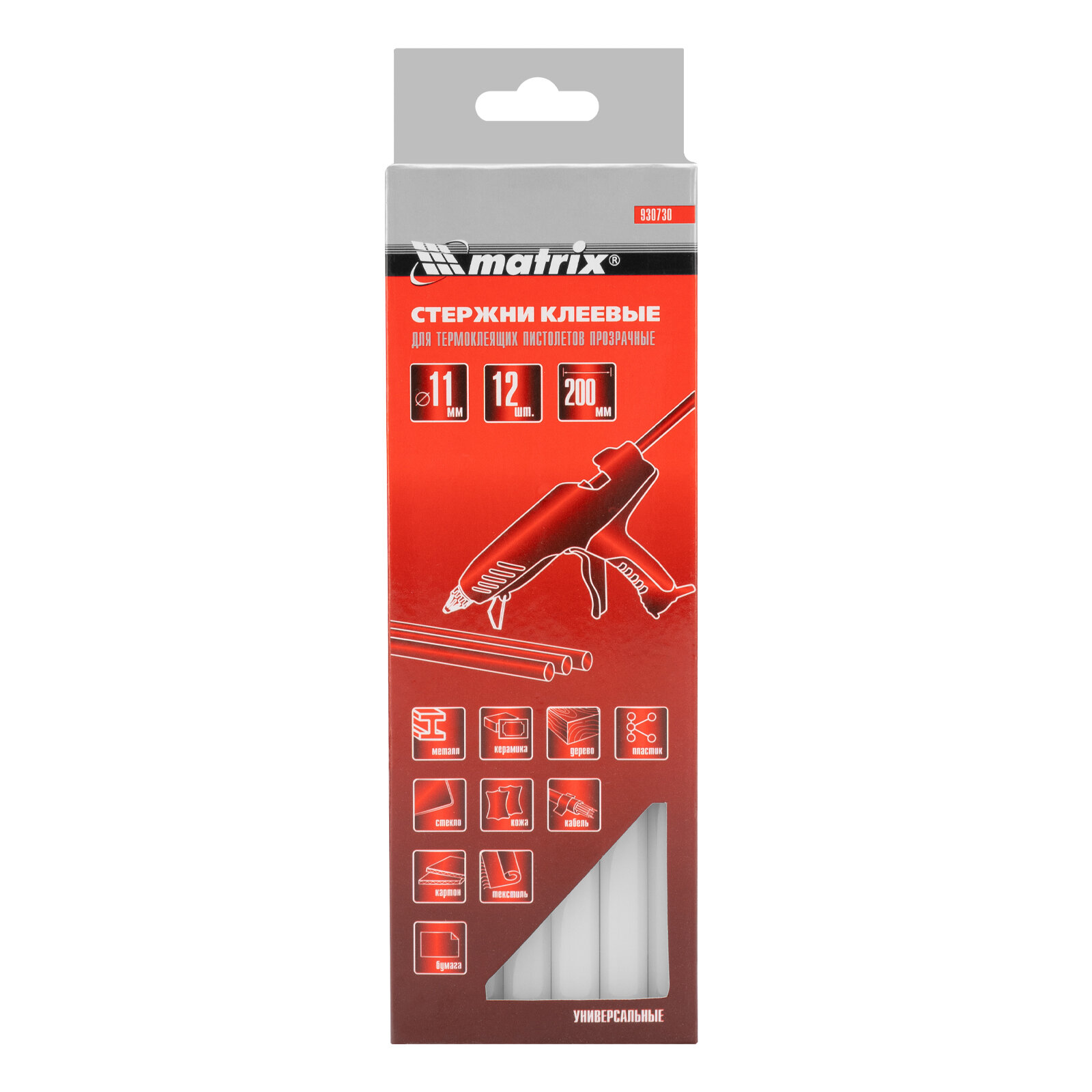 MATRIX 930730 Стержни клеевые, прозрачные, 11x200 мм ., 12 шт. в упаковке MATRIX 930730