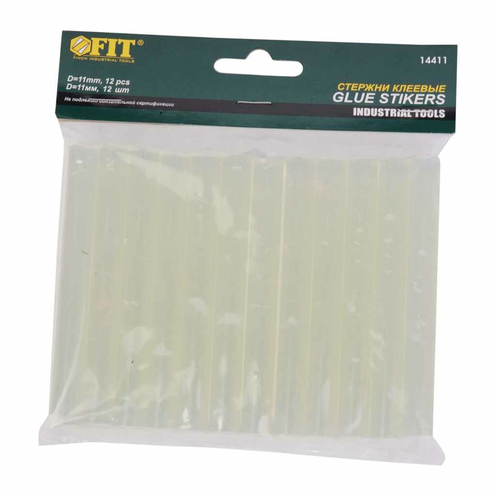 Стержни клеевые бесцветные д.11 мм х 100 мм, 12 шт | код 14411 | FIT (1 упак.)