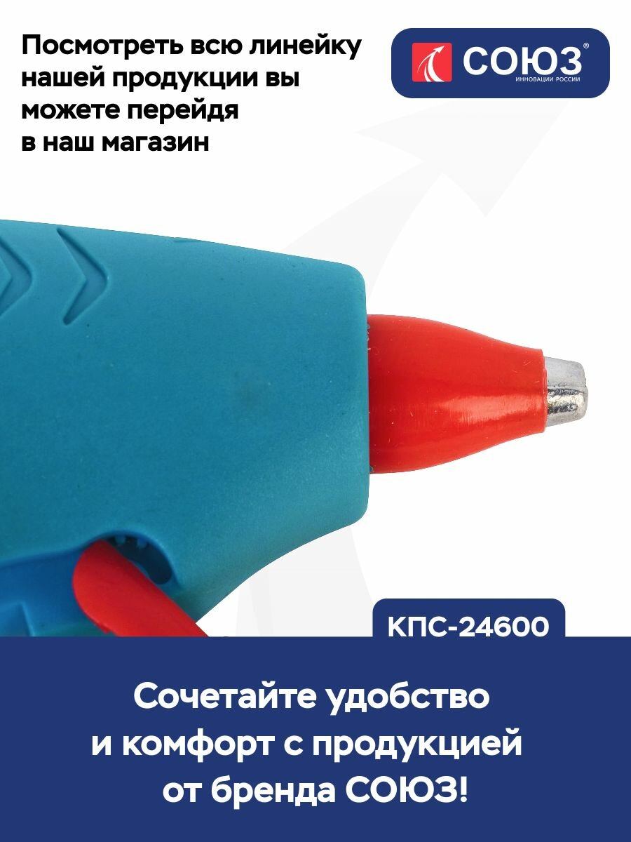 Клеевой пистолет СОЮЗ КПС-24600 (160Вт, 8г/мин, диаметр 7мм, индикация, блистер) интересное: