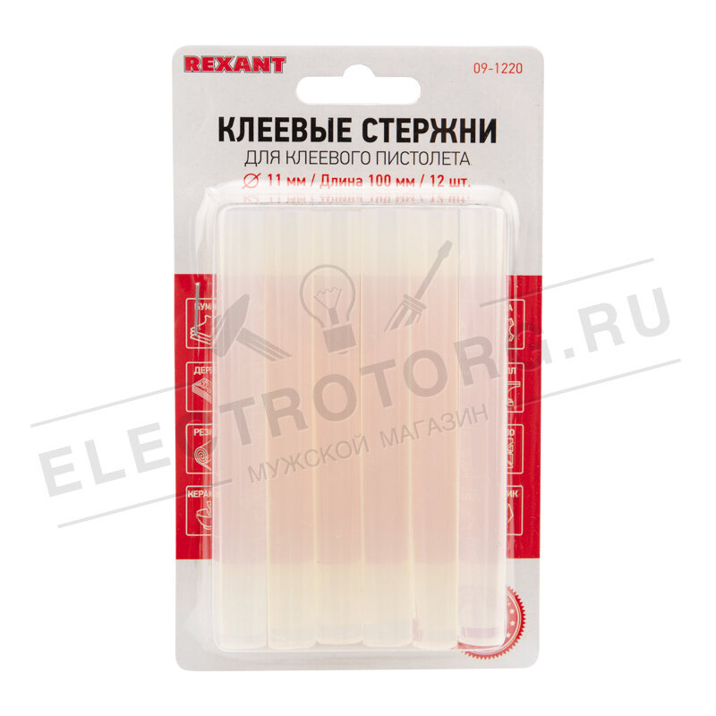 Стержень клеевой REXANT d11х100мм, прозрачные, 12шт. (09-1220)