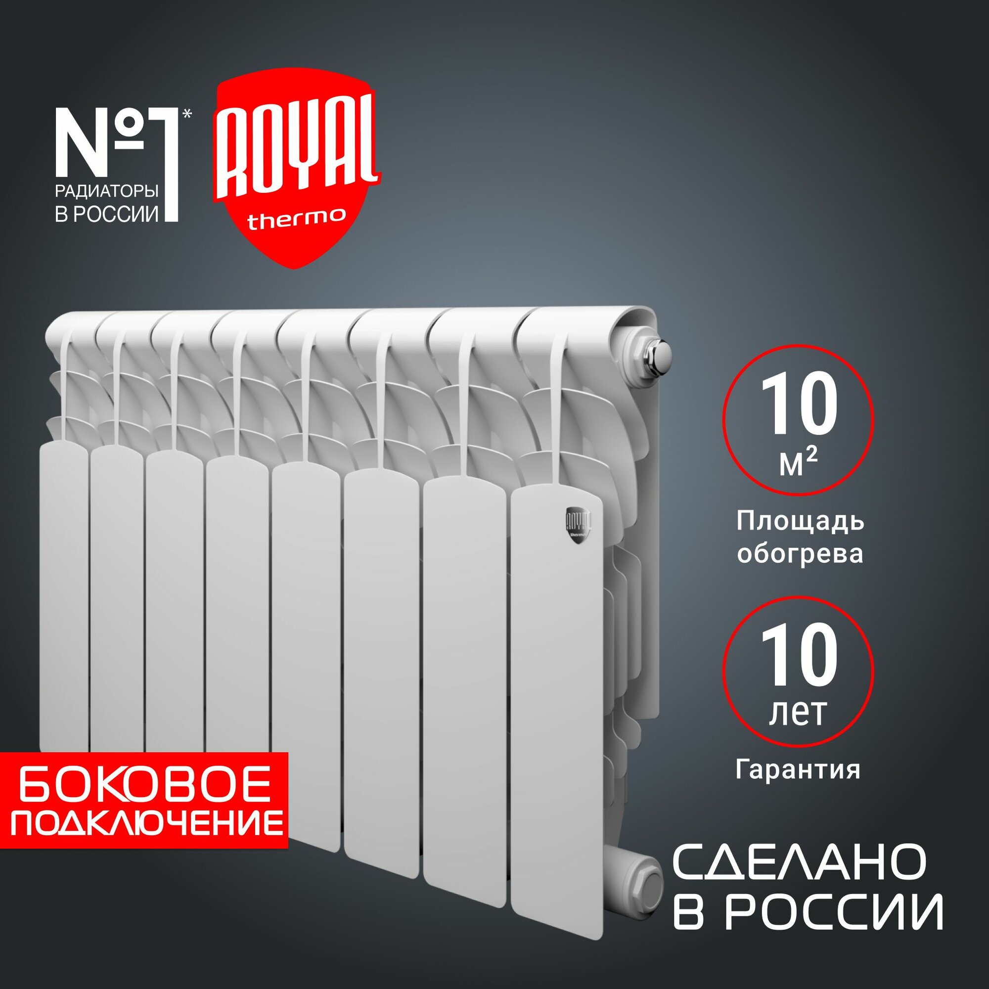 Радиатор алюминиевый Revolution 350 - 10 секций | код НС-1070103 | Royal Thermo ( 1шт )