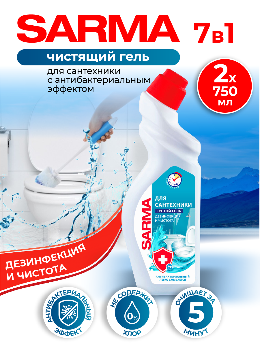 Купить SARMA Гель для сантехники Дезинфекция 750мл,2 шт