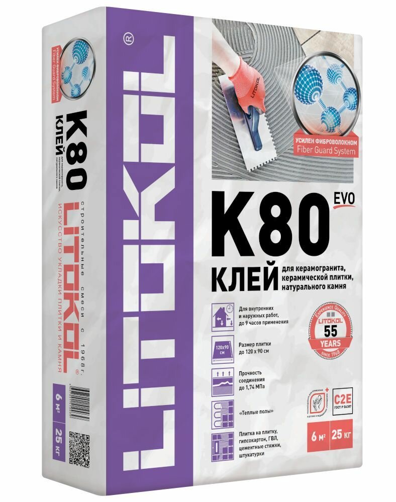 Клей плиточный "LITOFLEX" K80 25 кг серый