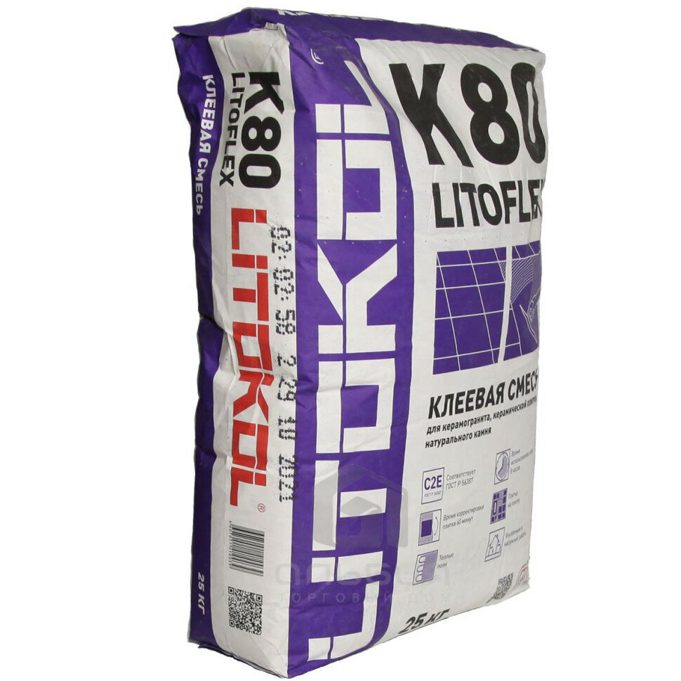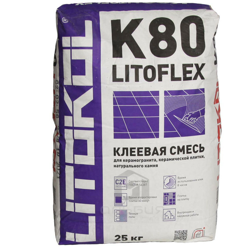 Клей для плитки для внутр. И наруж. Работ "LITOFLEX K80" 25 КГ (1/54) LITOKOL