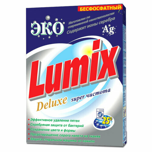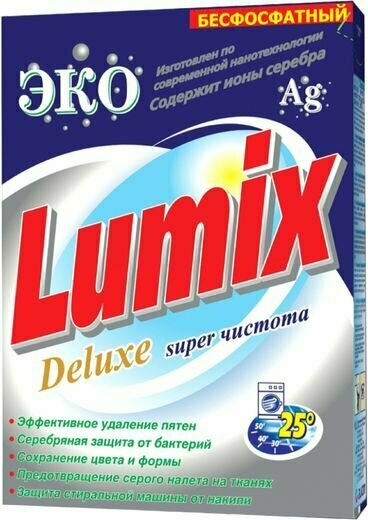 Стиральный порошок LUMIX Delux Автомат (картонная упакаковка 400г) бесфосфатный интересное: