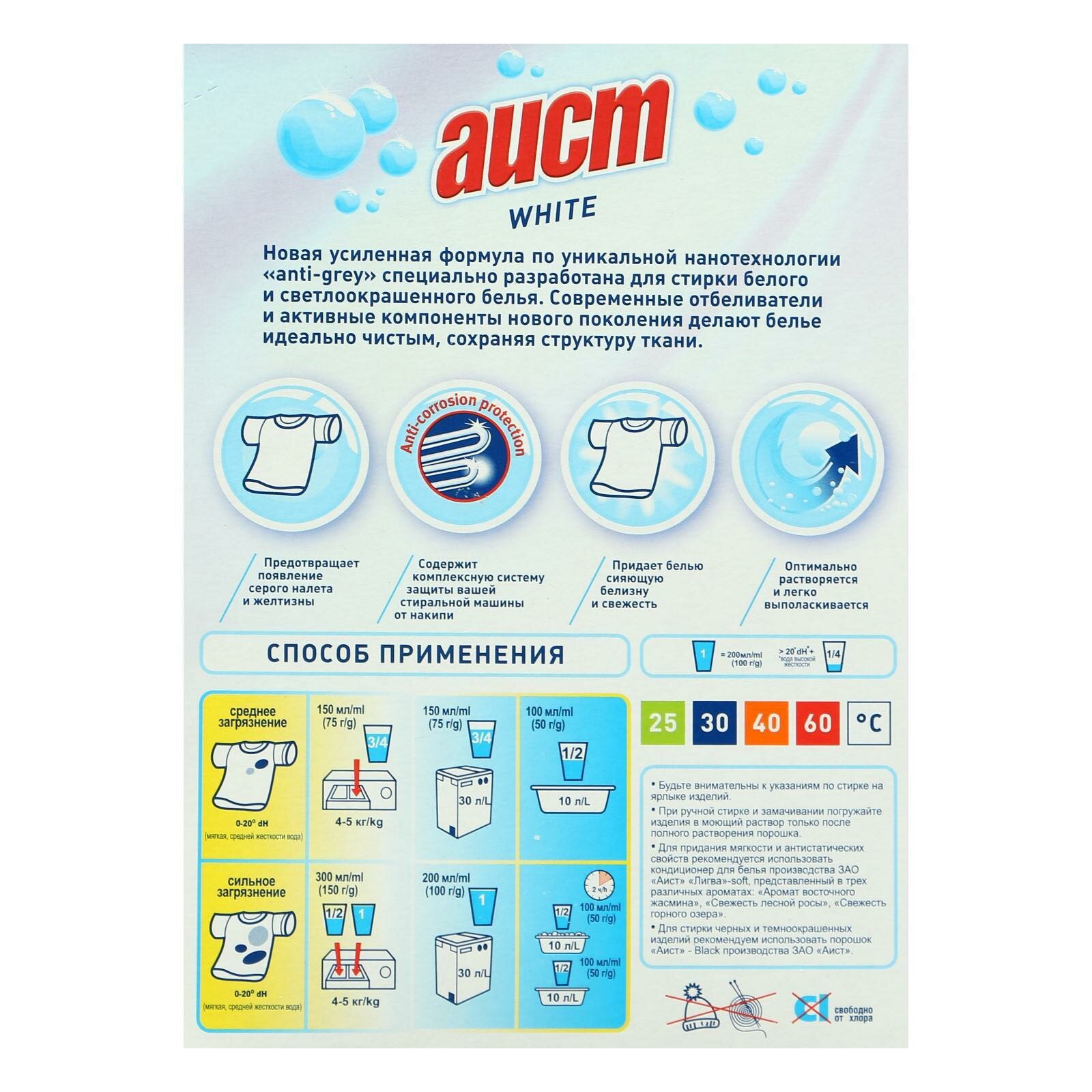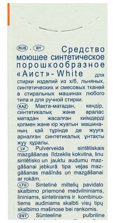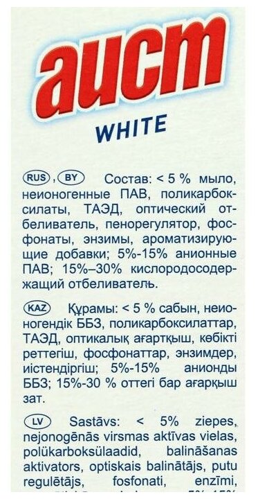 Купить Аист Стиральный порошок WHITE для белых и свелокрашенных тканей 400 г