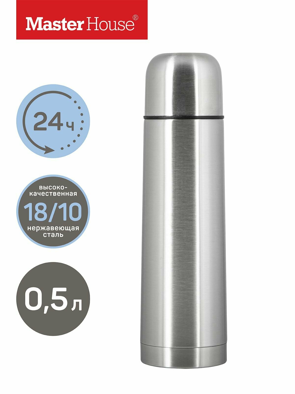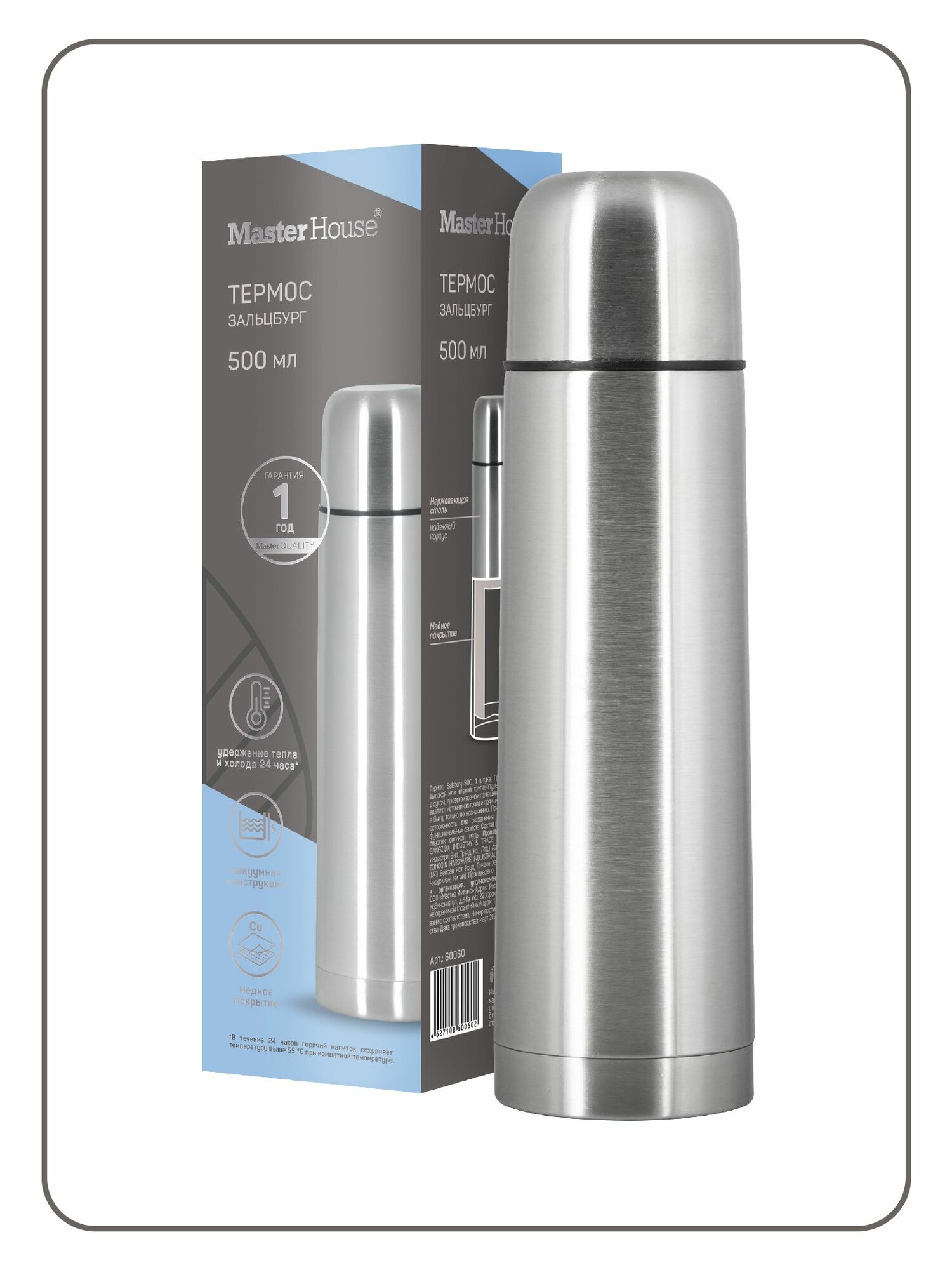 Термос Salzburg-500 узкое горло, с кнопкой, 0,5л, нерж сталь, арт.60060 Master House (арт. 542045)