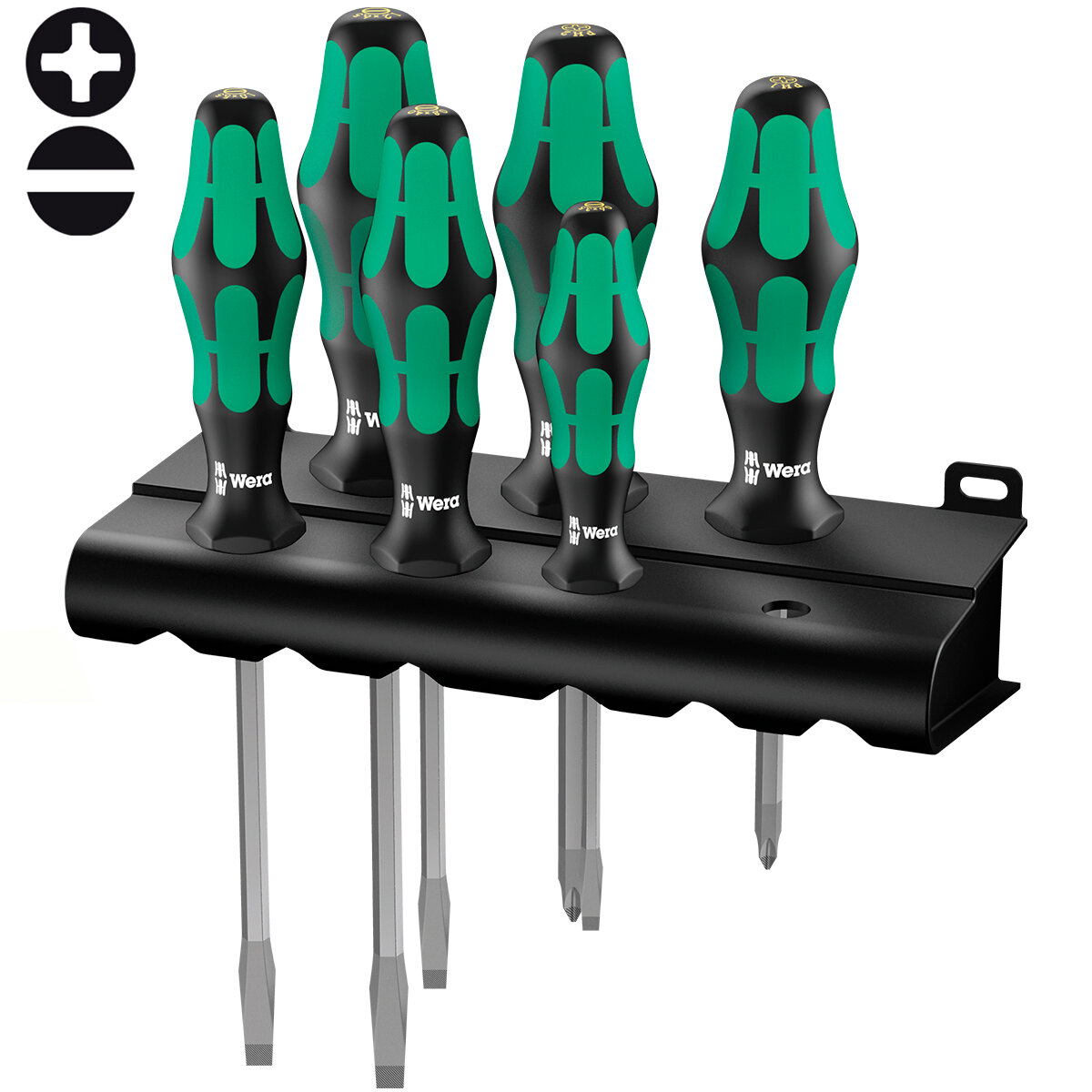 Набор отвёрток WERA WE-007680 334 SK/6 Rack Kraftform Plus Lasertip 6 пр., PH 1x80/2x100, SL 0.6x3.5x75/0.8x4.0x90/1.0x5.5x100/1.2x6.5x125