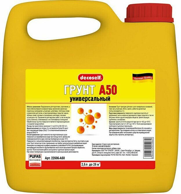 Декоселф A50 грунтовка универсальная (2,5л) / DECOSELF A50 грунтовка пропиточная универсальная (2,5л)