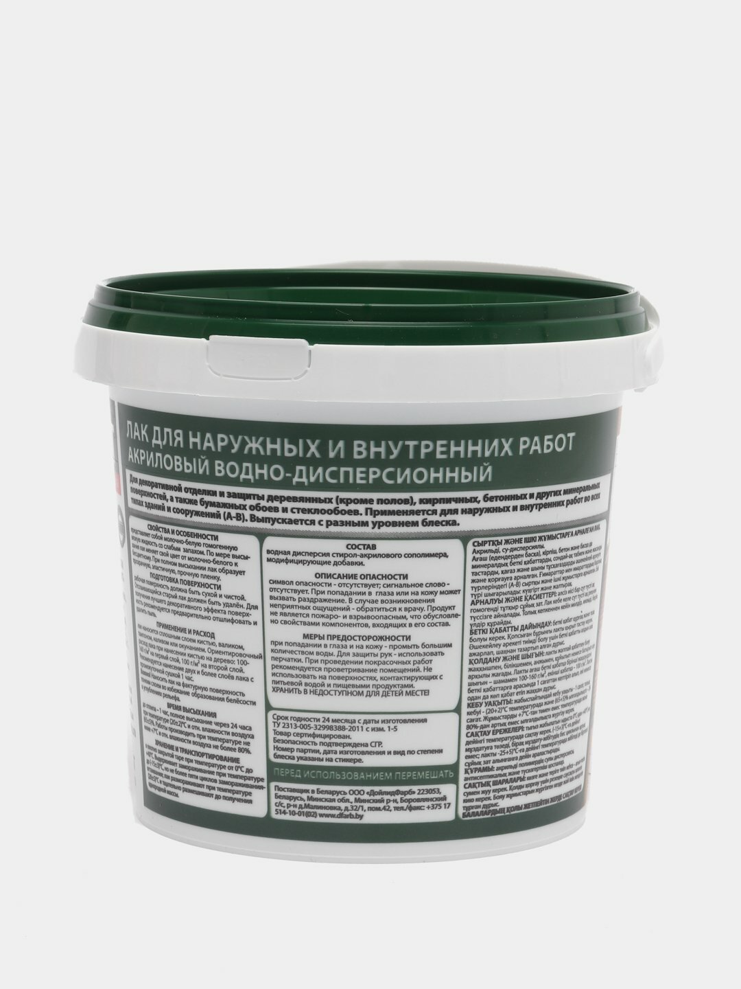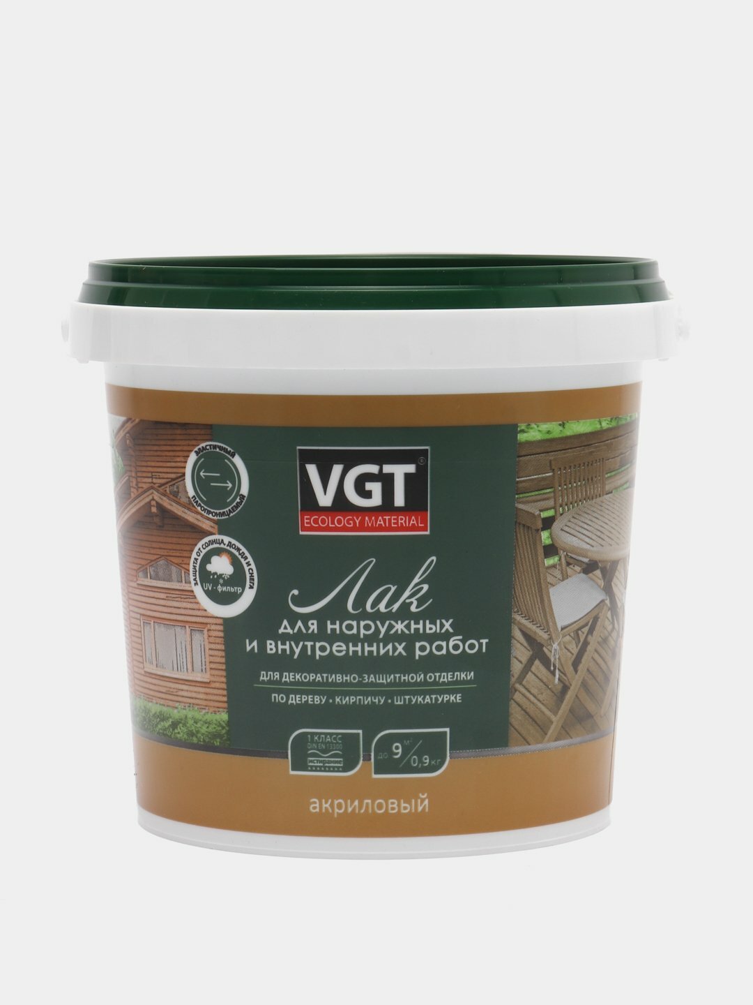 ВГТ лак акриловый для наружных и внутренних работ глянцевый (0,9кг) / VGT лак акриловый для наружных и внутренних работ по дереву кирпичу штукатурке г