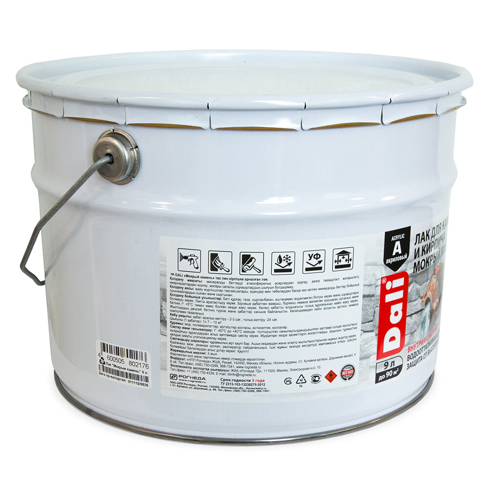Лак для камня и кирпича Dali Мокрый камень, акриловый, полуглянцевый, 9 л