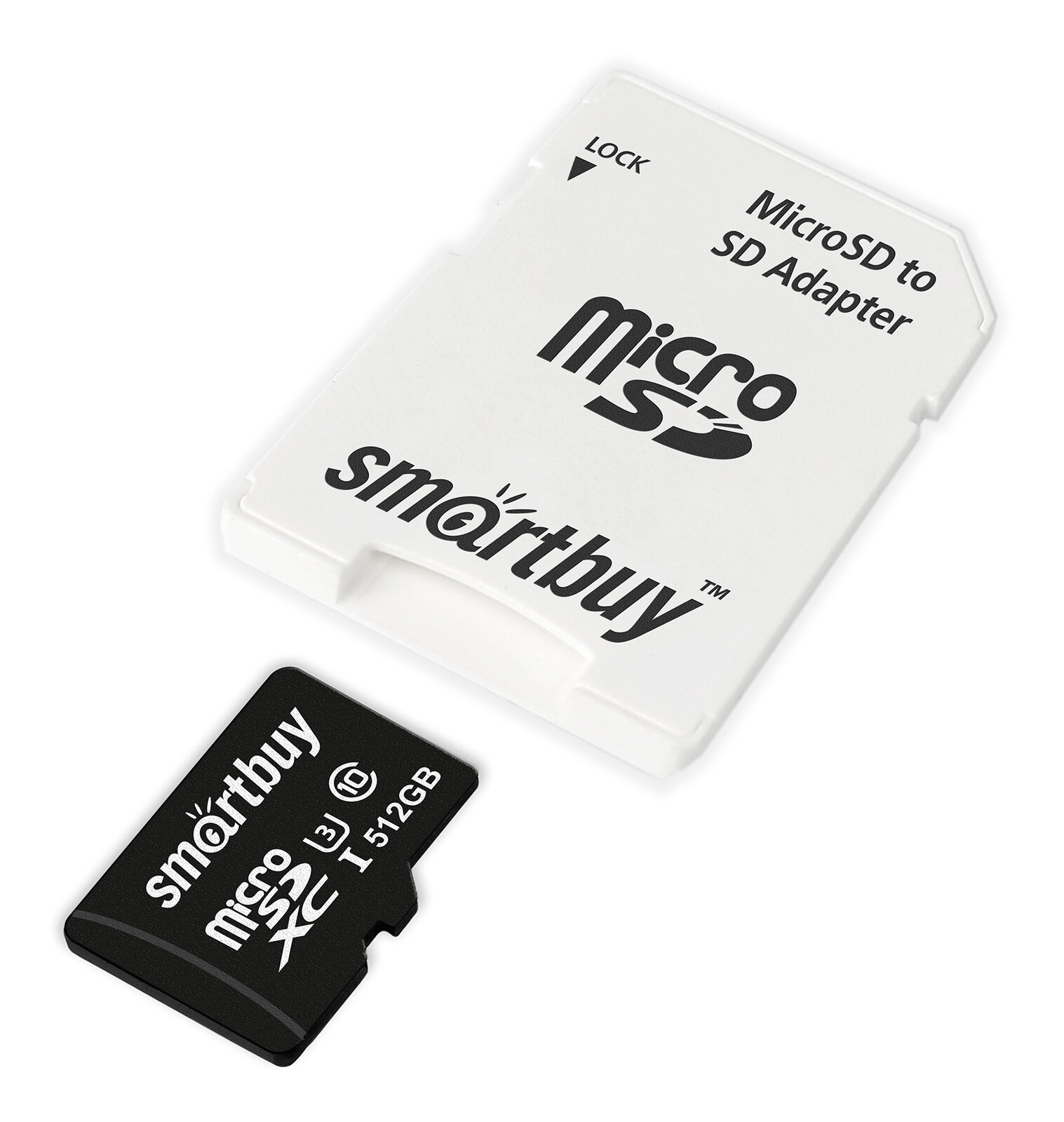 micro SDXC карта памяти Smartbuy 512GB Class10 PRO U3 R/W:90/70 MB/s (с адаптером SD)