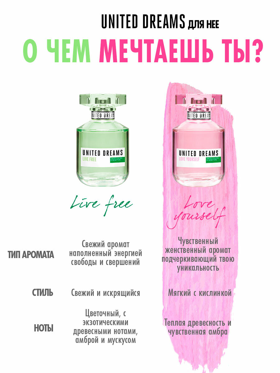 Туалетная вода женская United Colors of Benetton United Dream Live Free, 50 мл Бенетон женские духи ароматы для нее парфюм для женщин