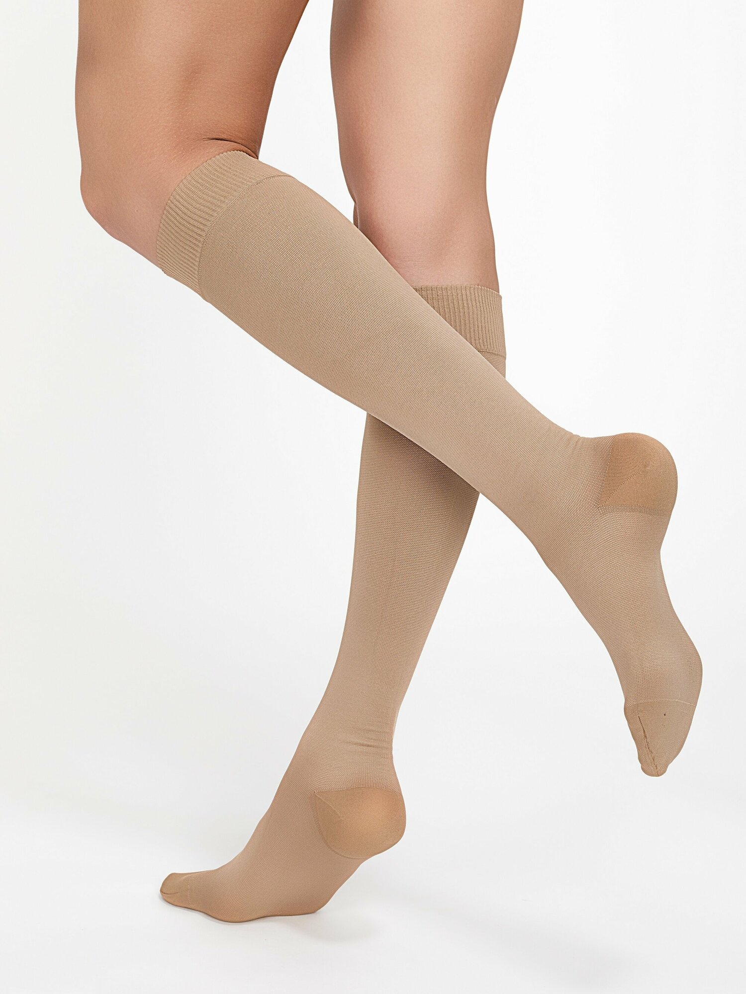 Компрессионные гольфы женские 2 класс (23-32 мм рт.ст.)/компрессионный трикотаж, цвет темно-бежевый, размер M