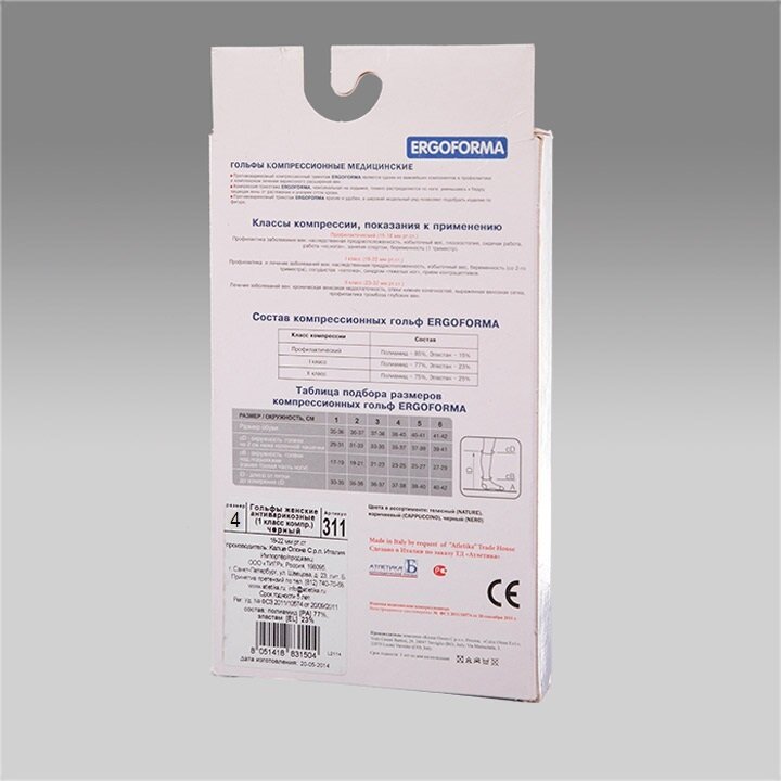 СохранитьГольфы Ergoforma 311 женские компрессионные (1 класс компр.) 18-21 мм рт.ст. (цв.черный) №4 интересное: