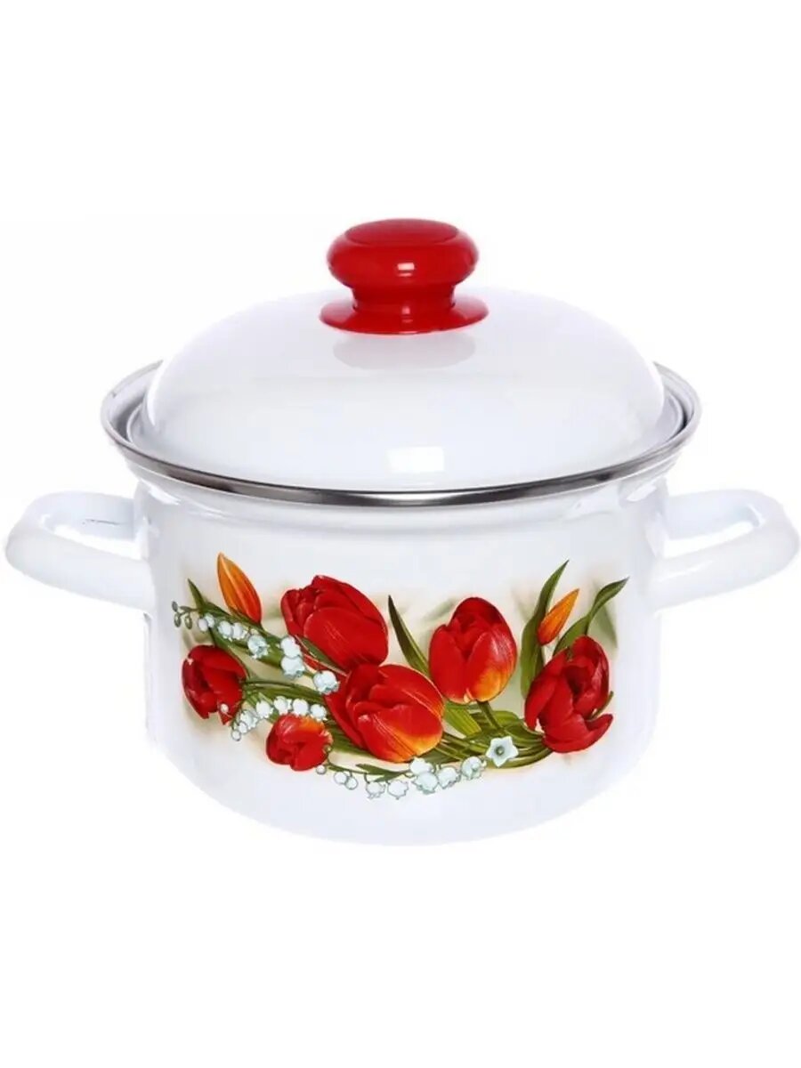 Кастрюля эмалированная 6 л Люпины Лысьвенские эмали