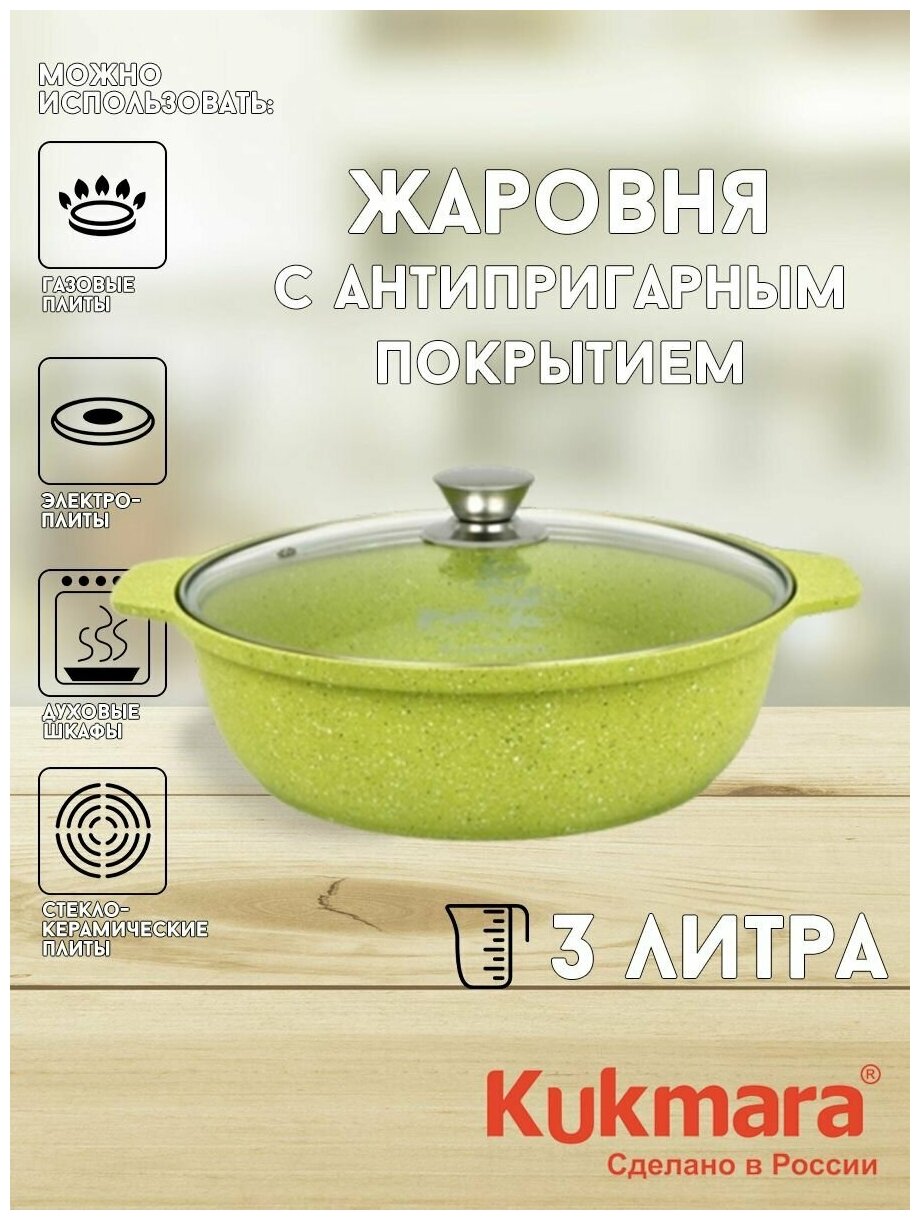 KUKMARA Кастрюля-жаровня 3л со стеклянной крышкой Trendy style lime (ж31tsl)