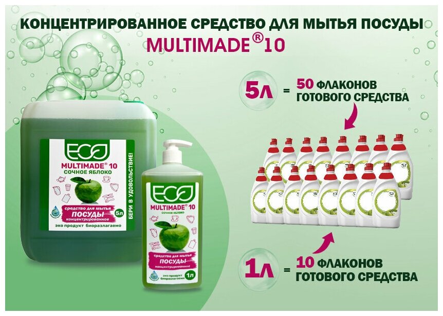 Средство для мытья посуды концентрированное Мультимэйд 10 / 1 л интересное: