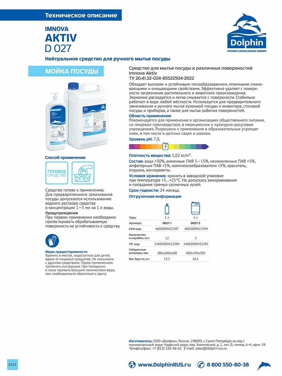 Dolphin Средство для мытья посуды Aktiv D 027
